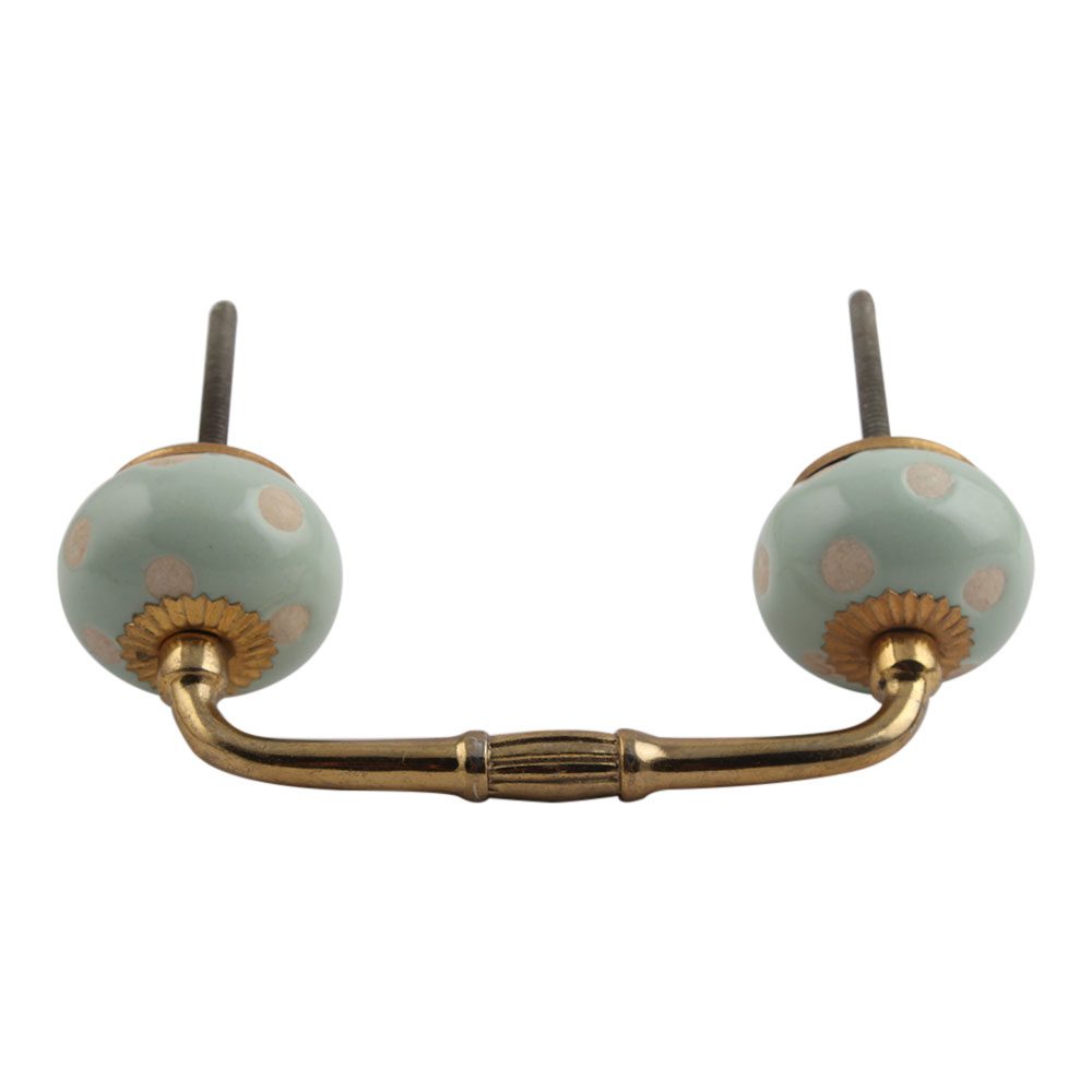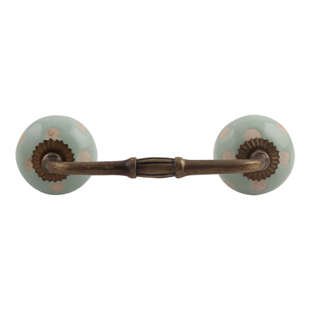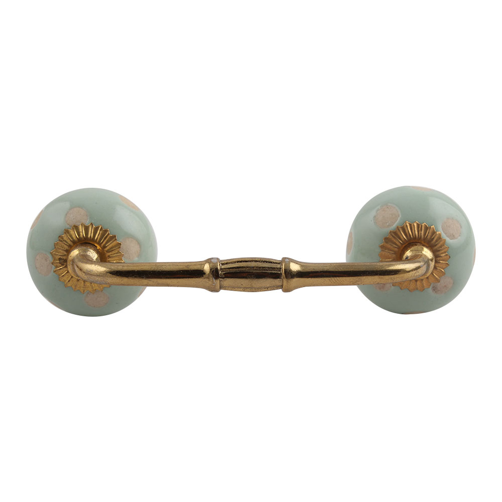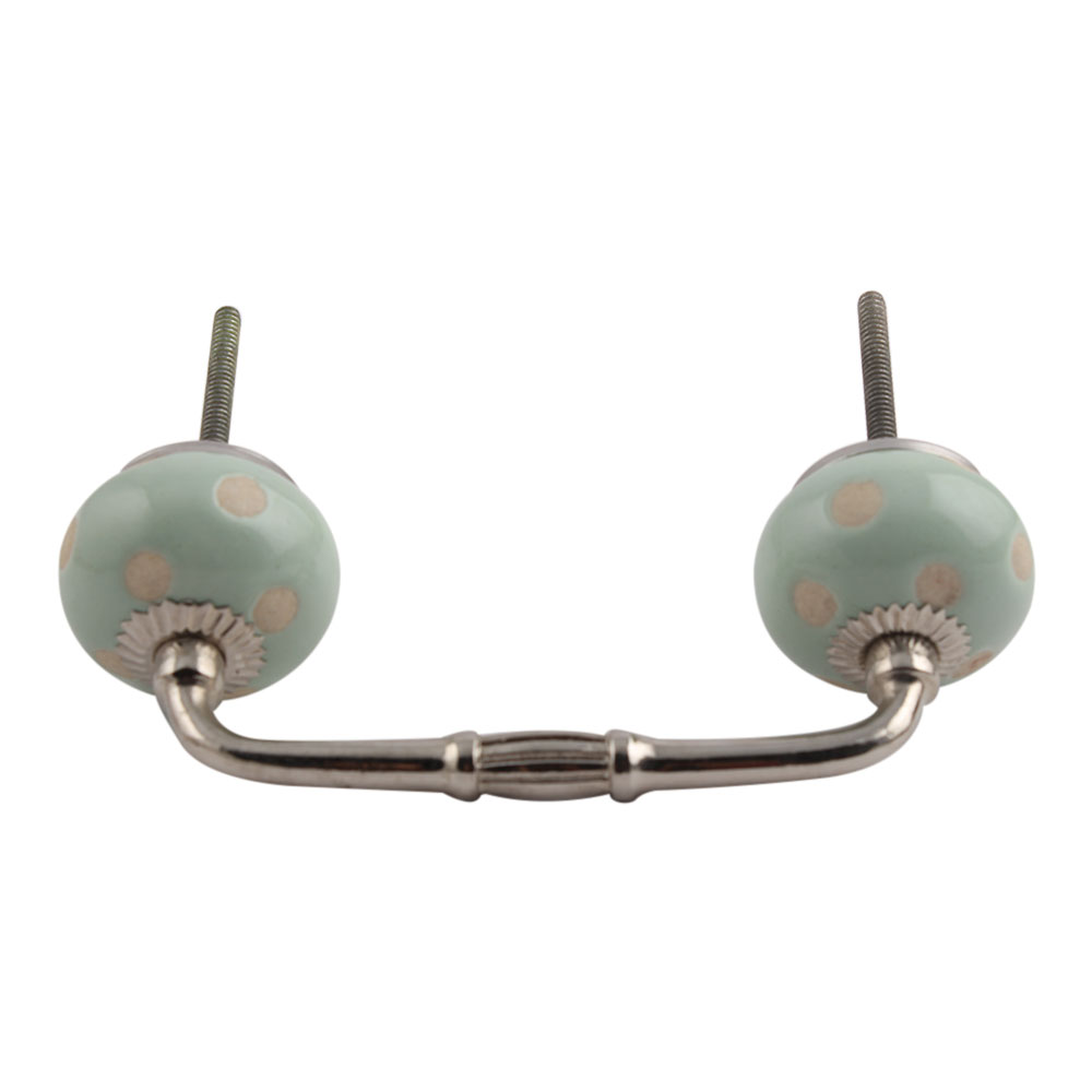 Sage Green Etched Dot Ceramic Bridge Handle. Ideal for Drawer, Dresser, Cabinet, Wardrobe, Cupboard and Almirah.