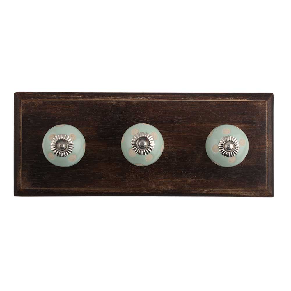 Sage Green Etched Dot Ceramic Wooden Hook. A Perfect Complement to the Soft Tone of the Wood are these White Traditional Hat &Amp; Coat Hook Made of Genuine Porcelain and Brass. It can be use to Hang Jewellery, Leashes, Towels, Scarves, Light Weight Sweaters, Caps Etc.