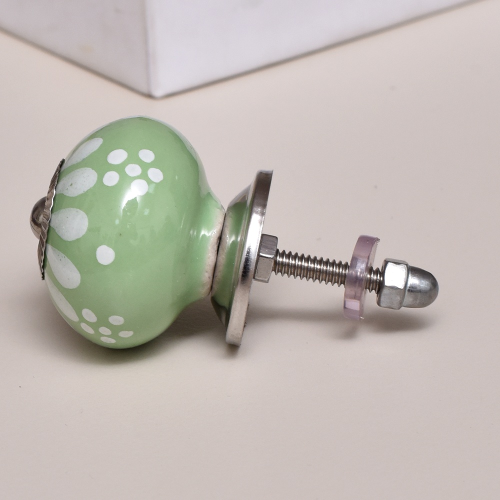 Installing these stylish knobs is straightforward and quick. The Sage Green Floral Ceramic Wardrobe Knobs come with all the necessary hardware for effortless installation, providing a simple way to refresh the appearance of your furniture. Their secure attachment ensures that they remain firmly in place over time.