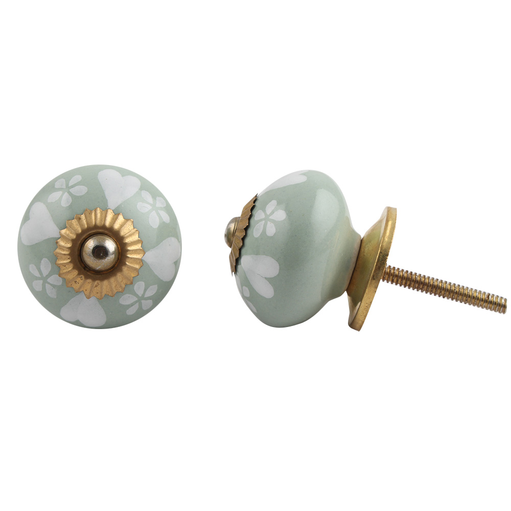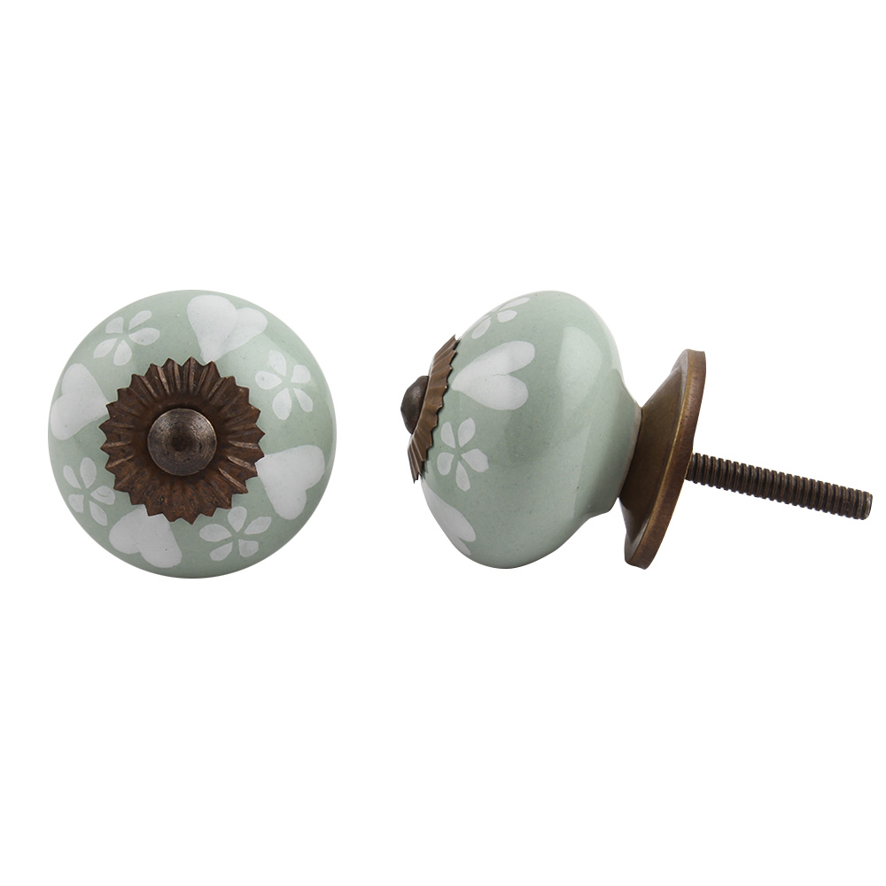 Sage Green Heart Ceramic Knob.Ideal for kitchen cabinets, kitchen drawers, dining room, bed room, chest drawers, dressing tables, almirahs, etc.