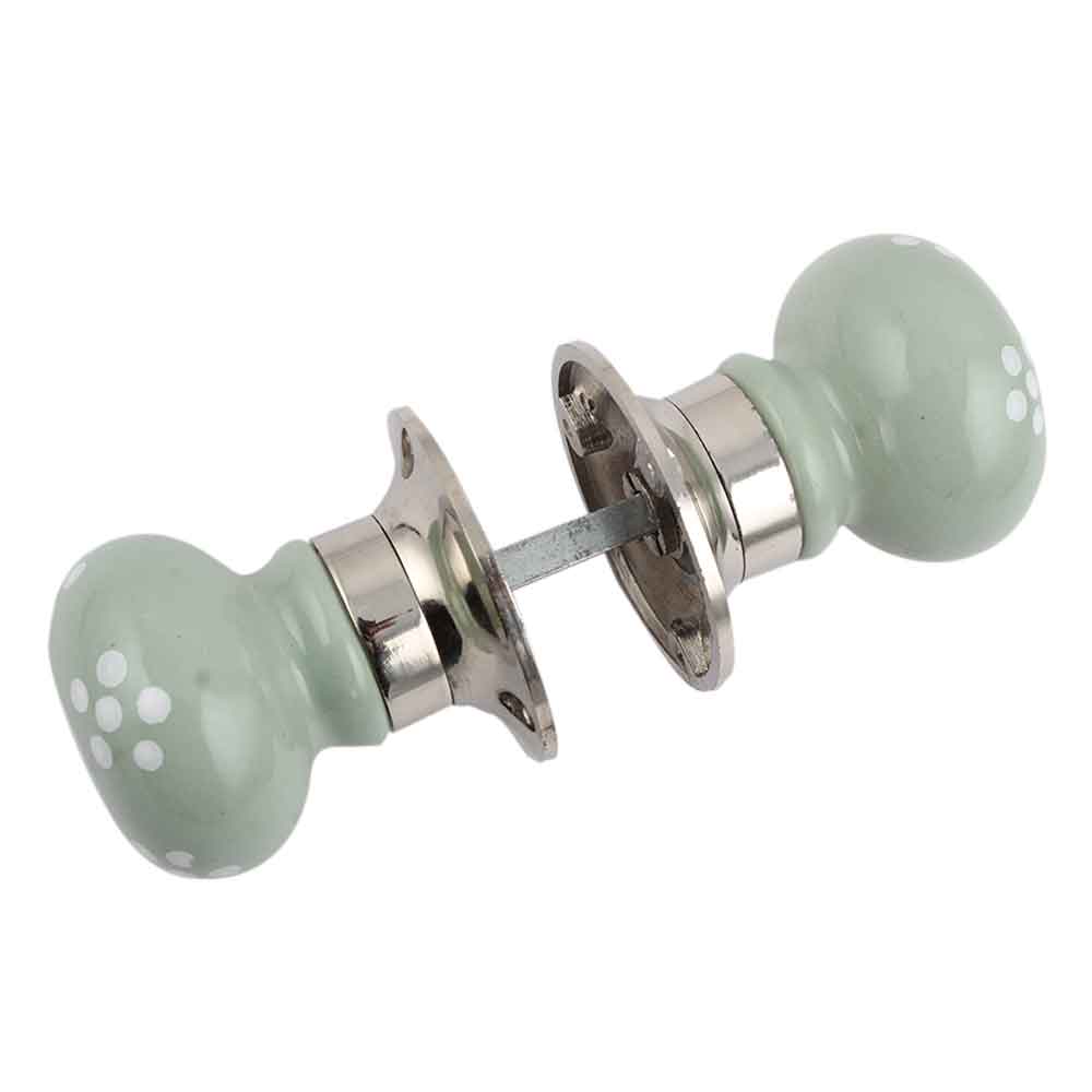 Sage Green Polka Dot Mortice Handle 2.25. Ideal for Drawer, Dresser, Cabinet, Wardrobe, Cupboard and Almirah.