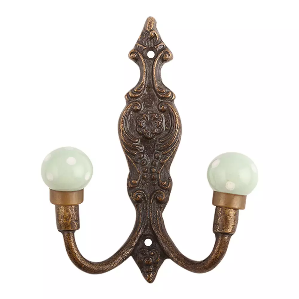 Sage Green White Dot Ceramic Iron Hook. When Put on Wall or Cabinet It Gives A Sturdy Look. This Hook is Strong Enough to Hold Your Cloths, Keys, Tea Cups, Coffee Mugs, Hand Towels Etc