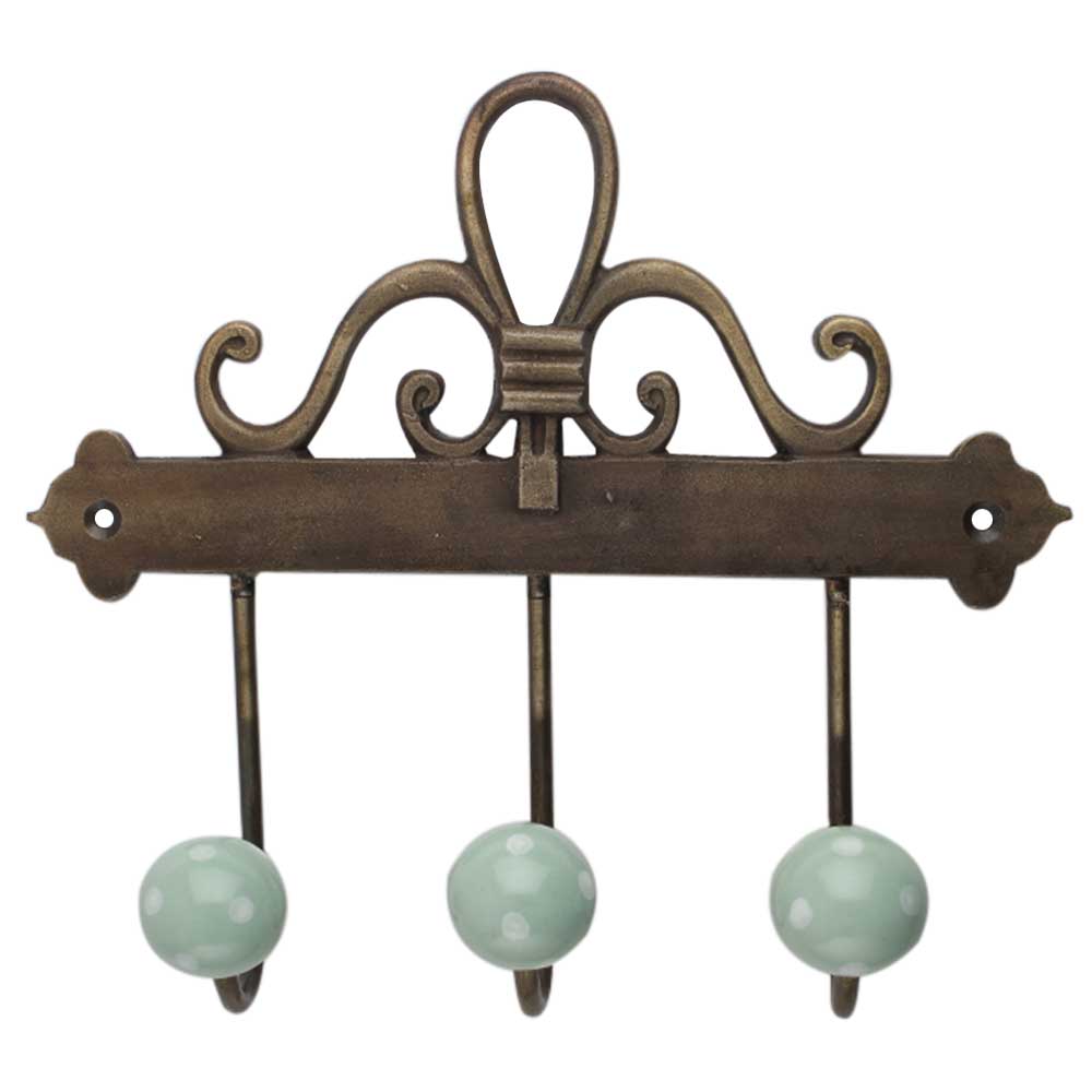 Sage Green White Dot Ceramic Iron Hook. A Perfect Complement to the Soft Tone of the Wood are these White Traditional Hat &Amp; Coat Hook Made of Genuine Porcelain and Brass. It can be use to Hang Jewellery, Leashes, Towels, Scarves, Light Weight Sweaters, Caps Etc.