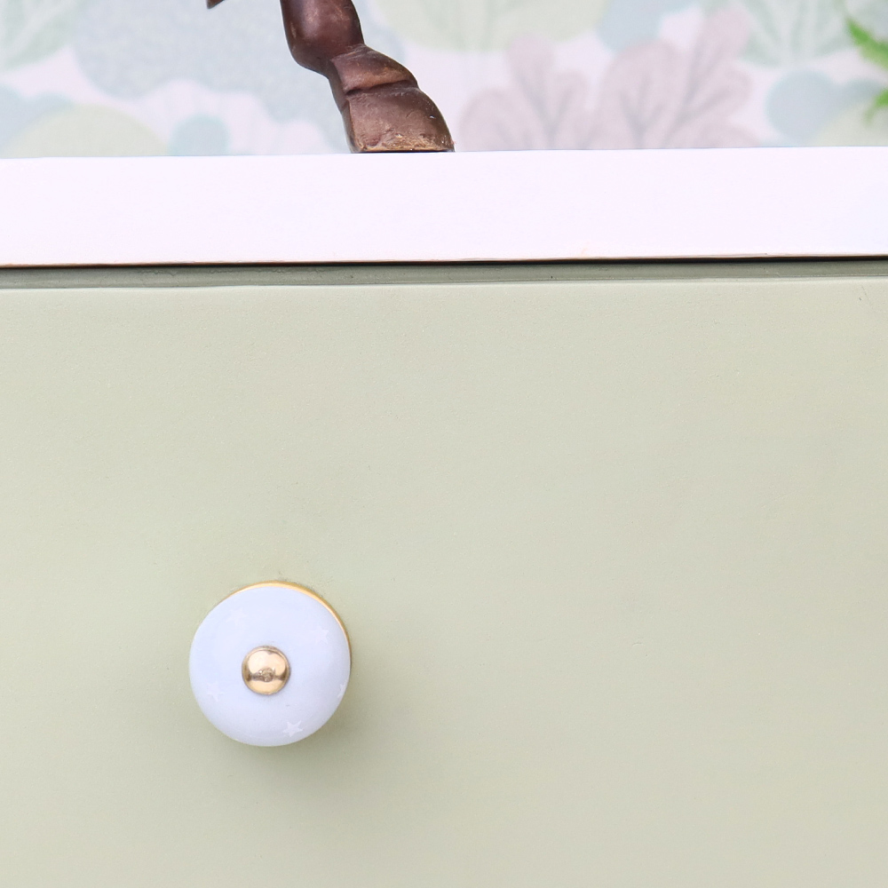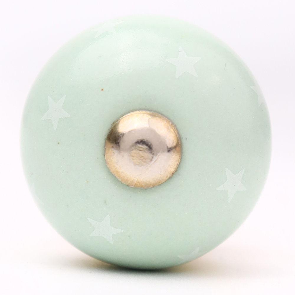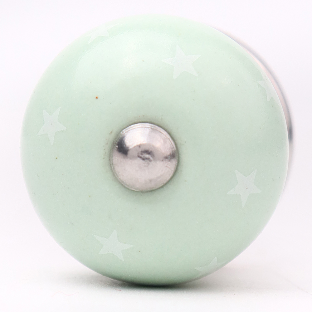 Sage Green White Tiny Star Pattern Cabinet Knobs. Ideal for Drawer, Dresser, Cabinet, Wardrobe, Cupboard and Almirah.