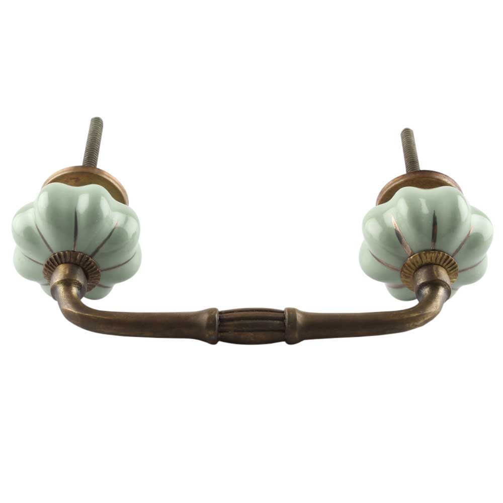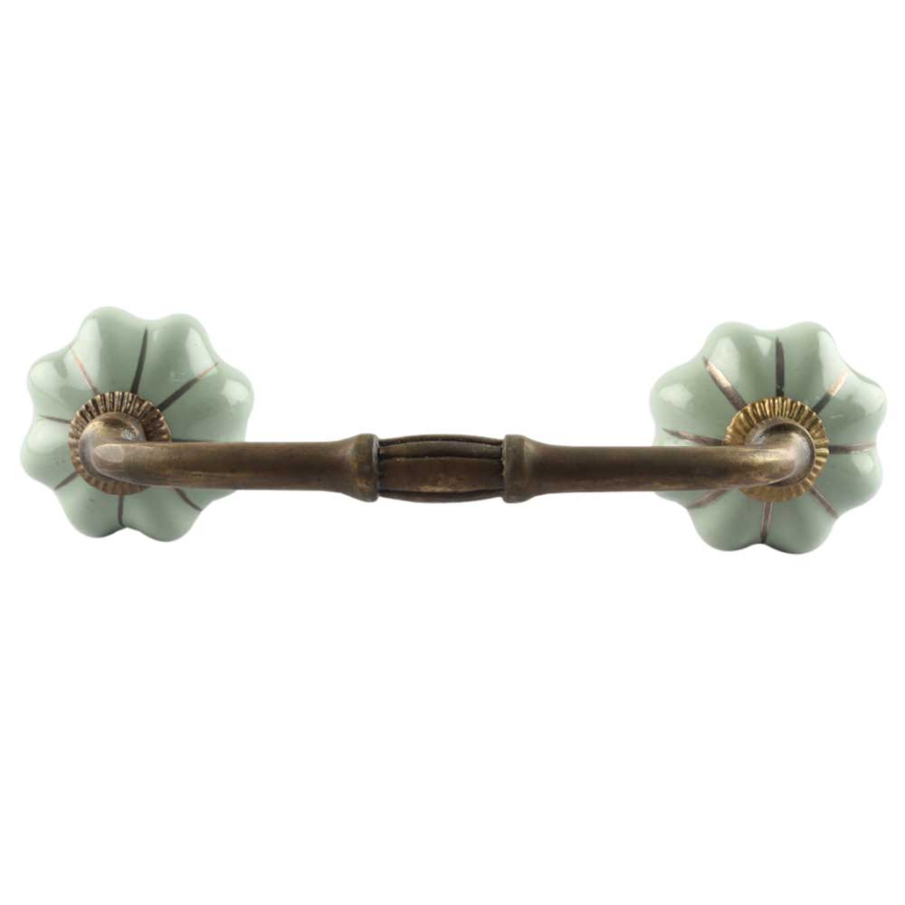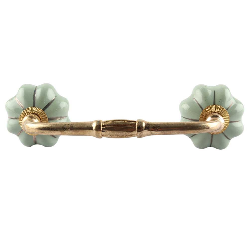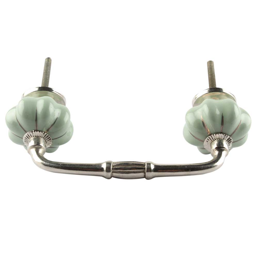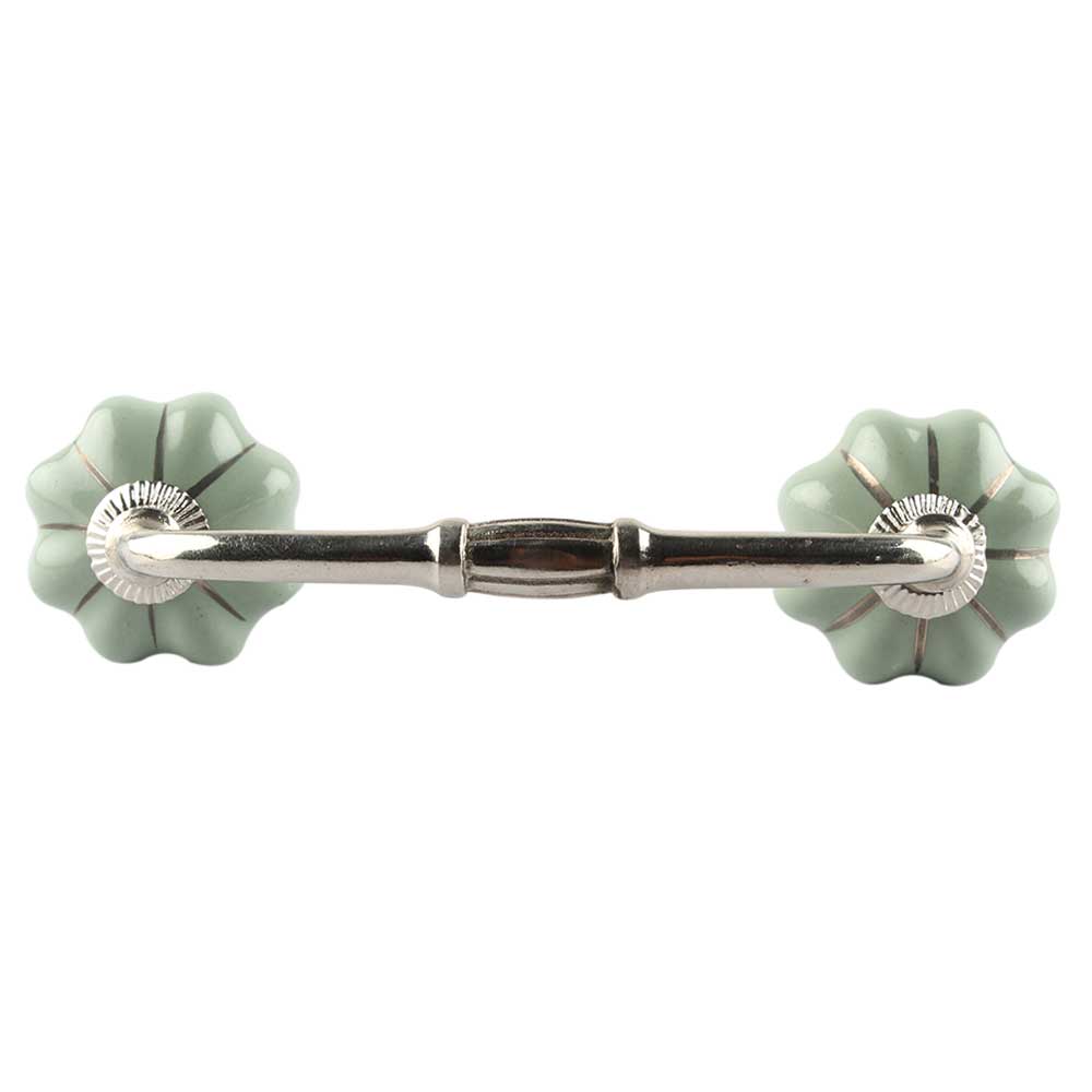 Sage Green With Silver Line Medium Ceramic Bridge Handle. Ideal for Drawer, Dresser, Cabinet, Wardrobe, Cupboard and Almirah etc.