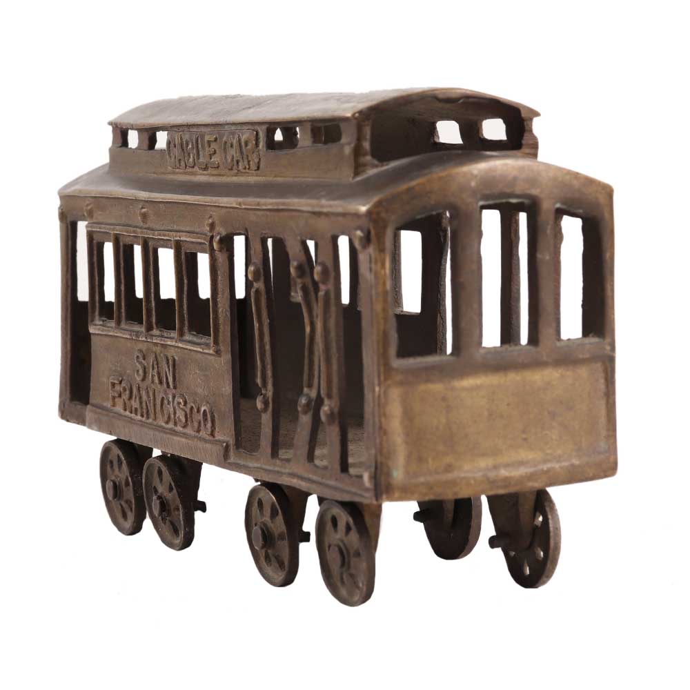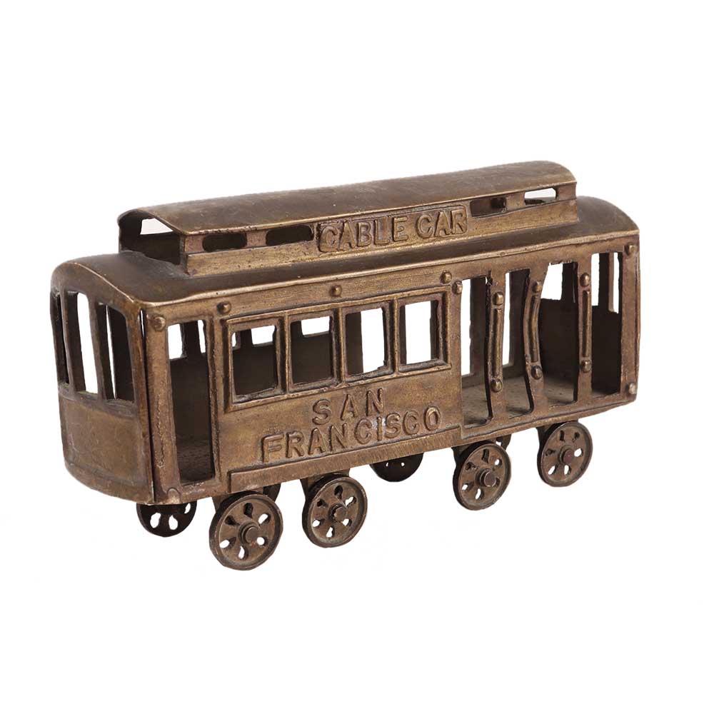 Incredibly cute brass San Francisco Cable Car with spinning wheels! This is a fantastic piece to put on a chest of drawers or office desk to show your love for The Golden Gate City. A lovely gift set for those with ties to San Francisco.