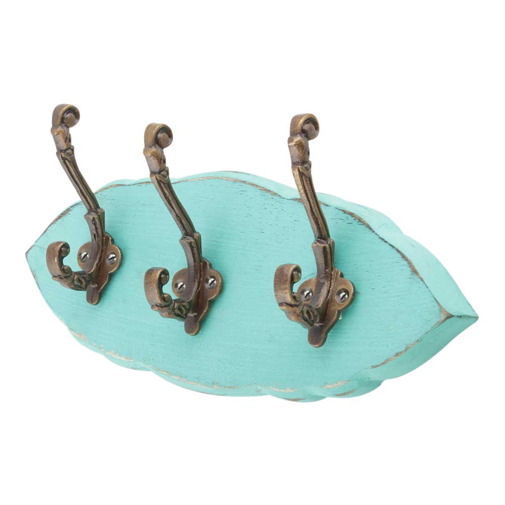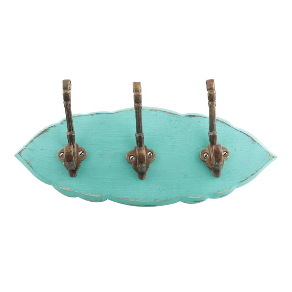 Sea Green Antique Small Wall Wooden Iron Hooks. A Perfect Complement to the Soft Tone of the Wood are these White Traditional Hat & Coat Hook Made of Genuine Porcelain and Brass. It can be use to Hang Jewellery, Leashes, Towels, Scarves, Light Weight Sweaters, Caps Etc.