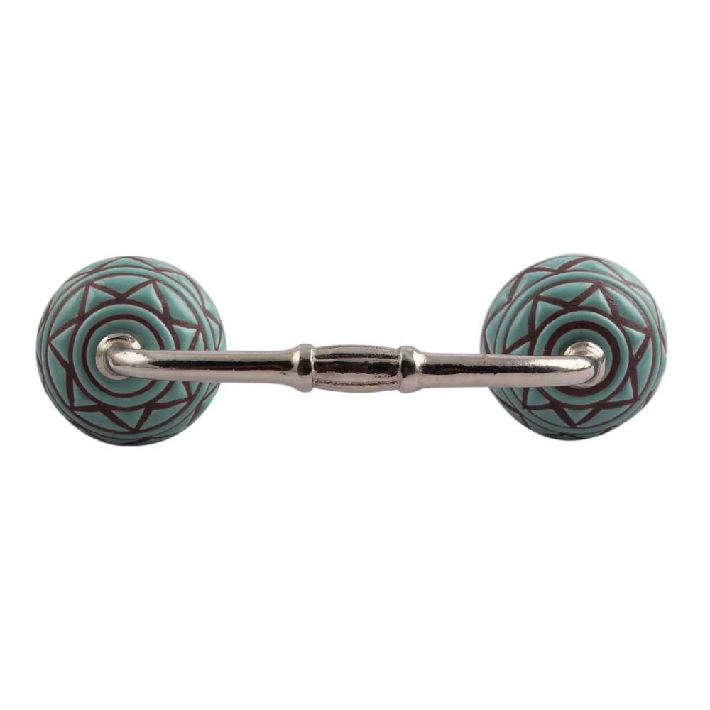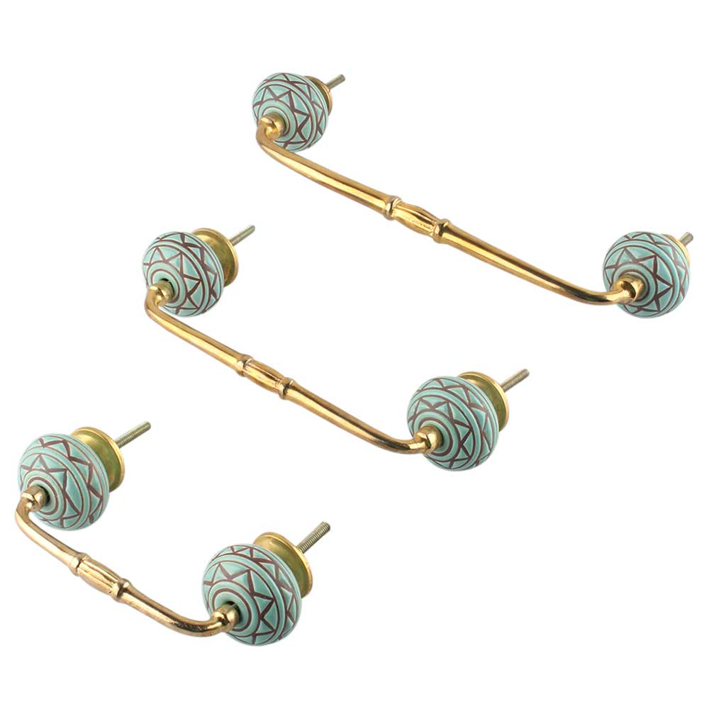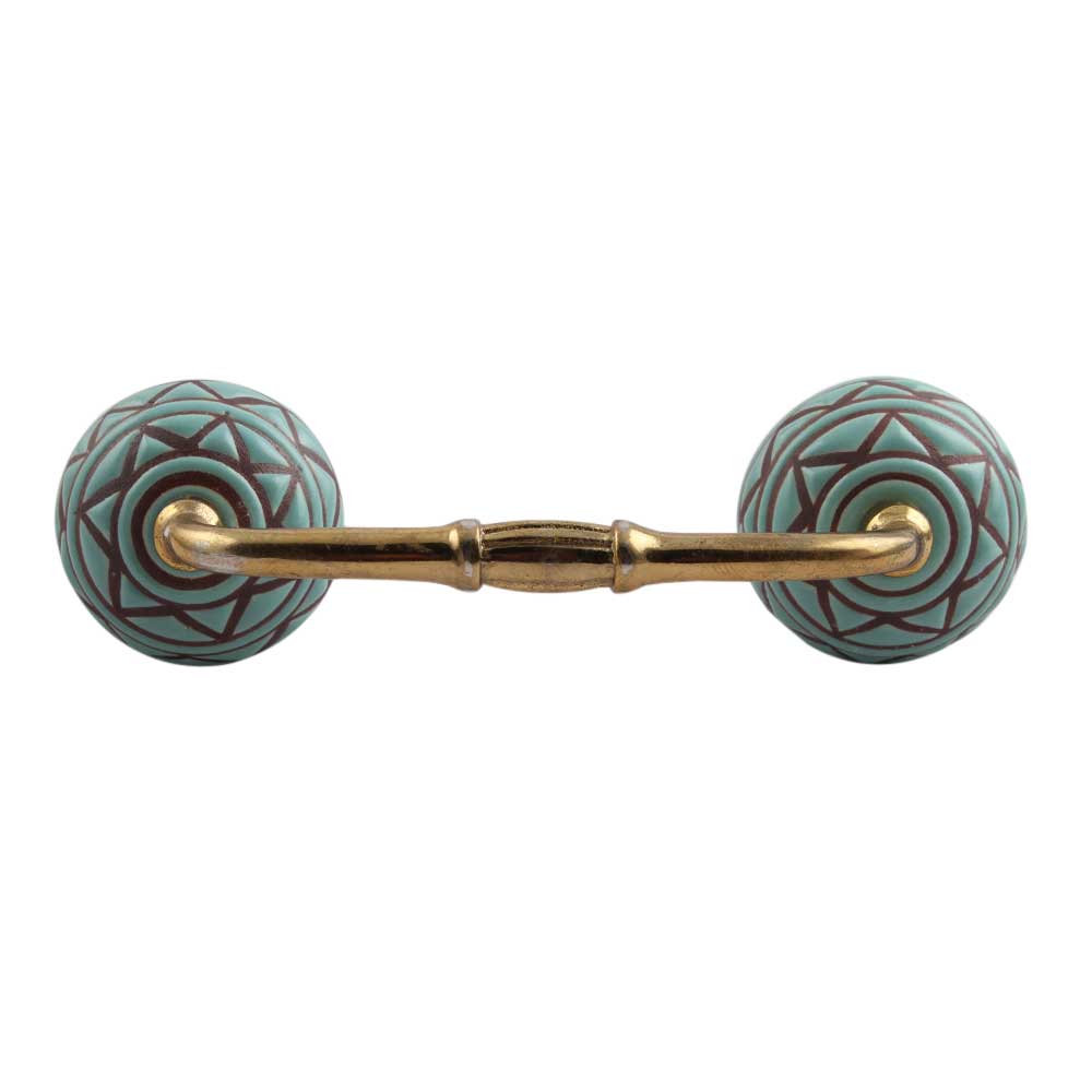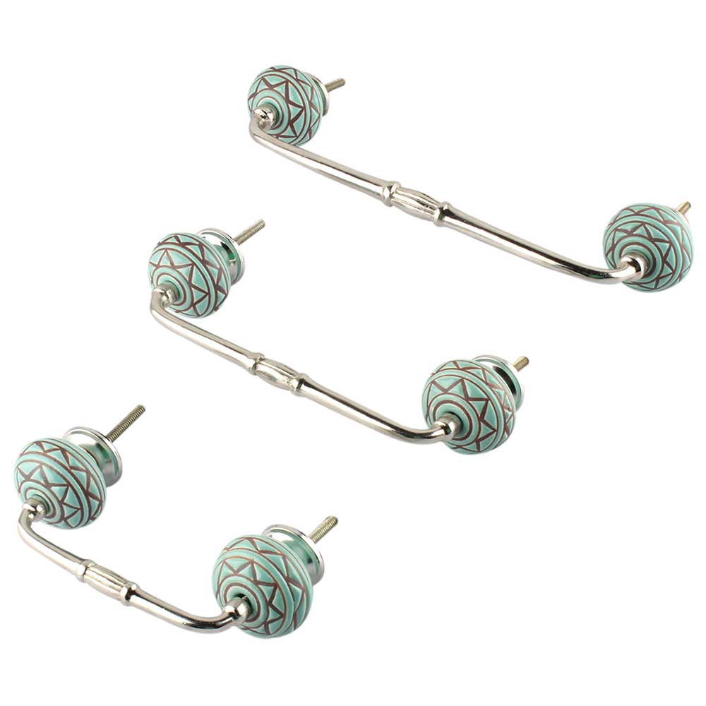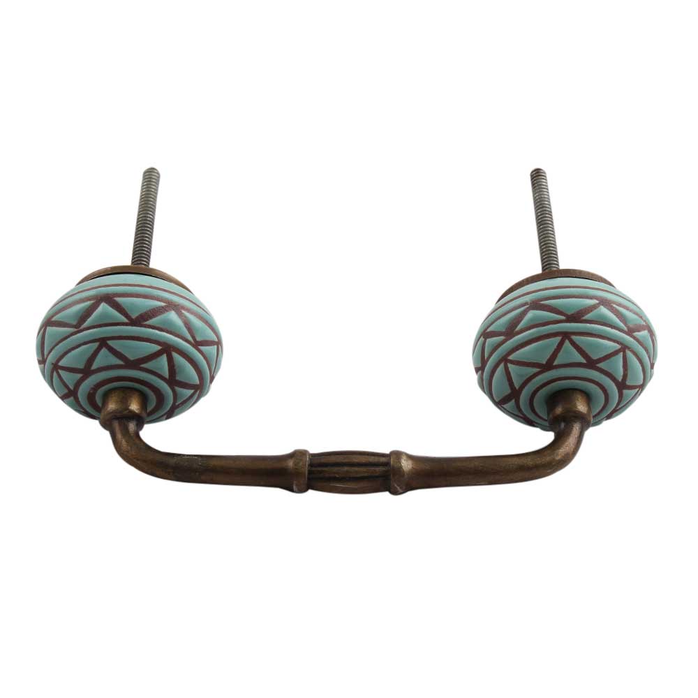 Sea Green Base Brown Pattern Etched Ceramic Bridge Handle. Ideal for Drawer, Dresser, Cabinet, Wardrobe, Cupboard and Almirah.