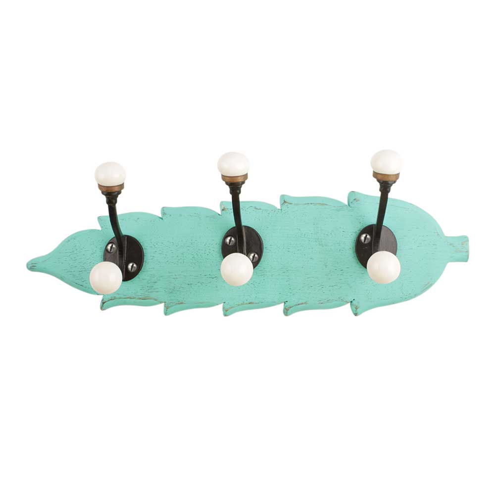 Sea Green Black Double Loop Ceramic Iron Wooden Hooks. A Perfect Complement to the Soft Tone of the Wood are these White Traditional Hat & Coat Hook Made of Genuine Porcelain and Brass. It can be use to Hang Jewellery, Leashes, Towels, Scarves, Light Weight Sweaters, Caps Etc.