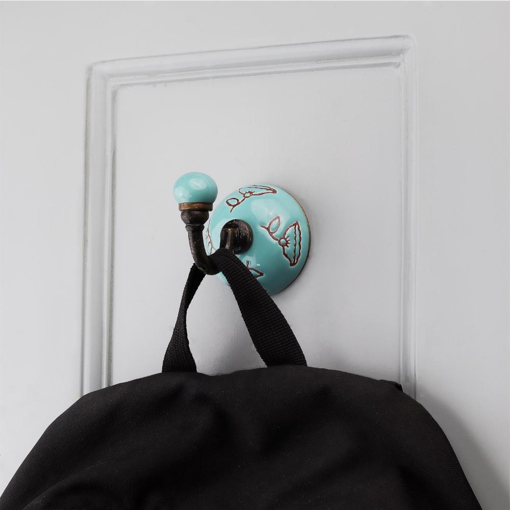 Sea Green Brown Calla Lily Etched Ceramic Wall Hook. When Put on Wall or Cabinet It is An Art in Itself. This Hook is Strong Enough to Hold Your Cloths, Keys, Tea Cups, Coffee Mugs, Hand Towels etc.