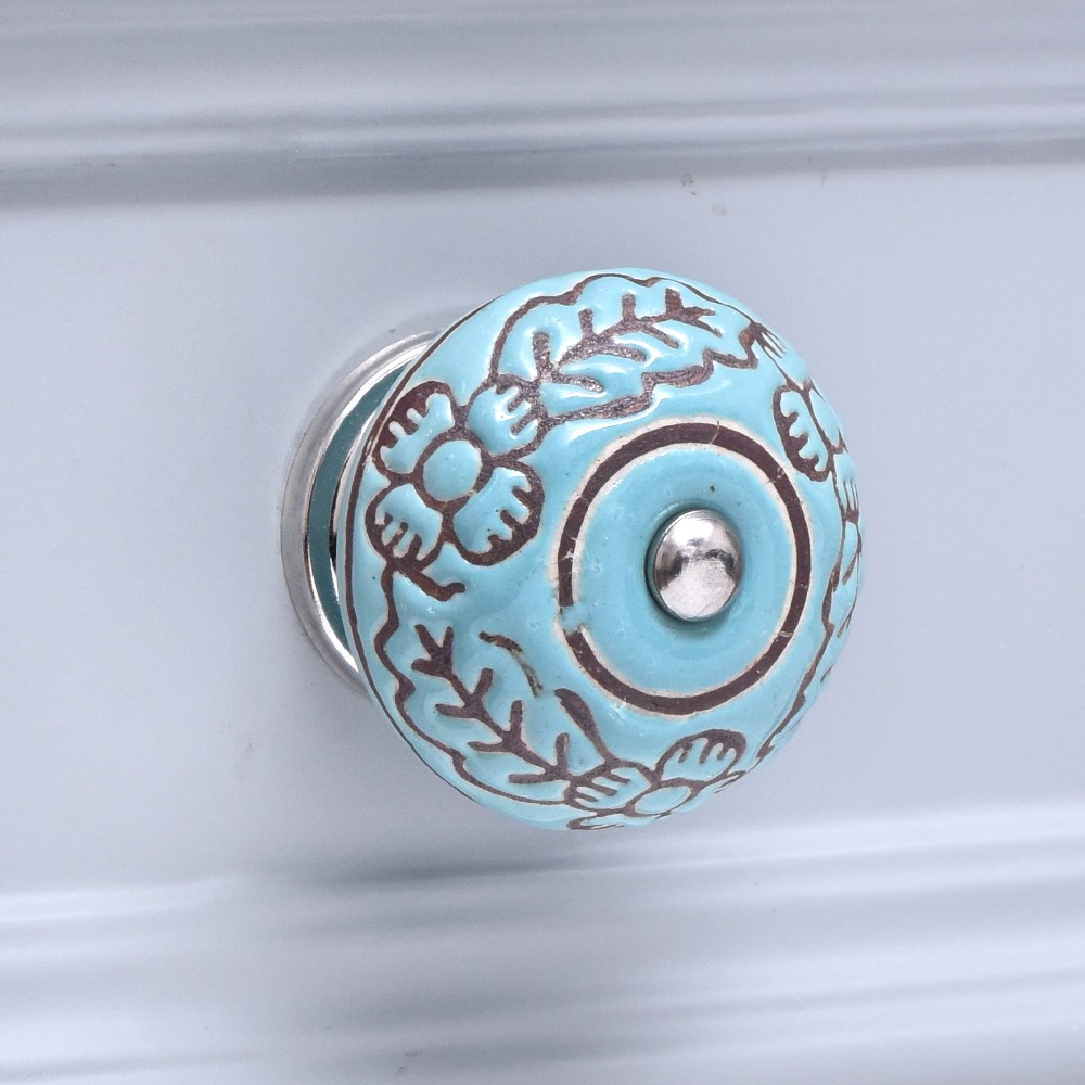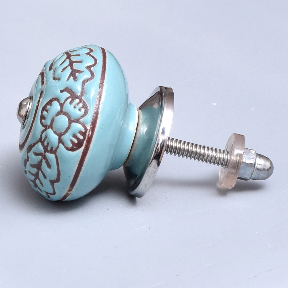 Crafted from ceramic, the Sea Green Brown Leaf Flower Etched Ceramic Knob is built to withstand daily use without losing its charm. It’s a durable choice for long-term home décor needs.