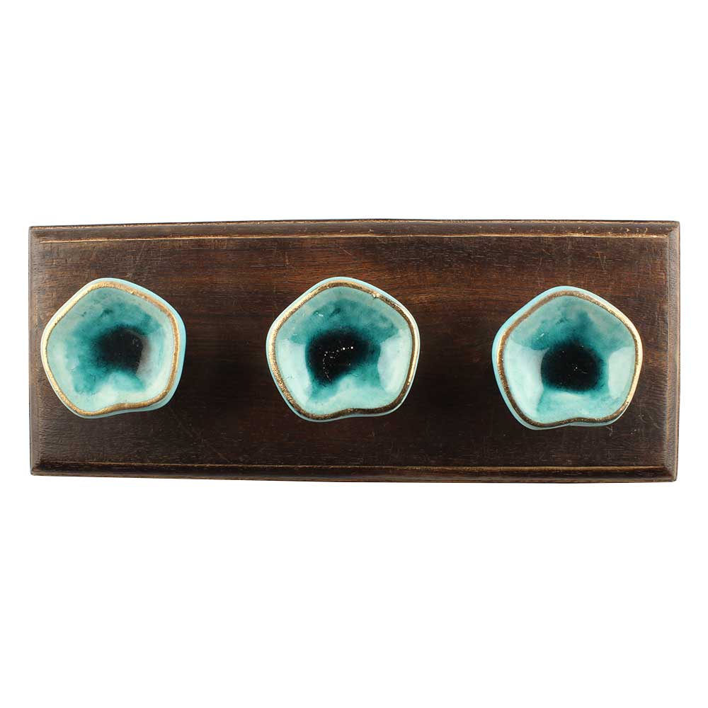 Sea Green Ceramic Wooden Hook. A Perfect Complement to the Soft Tone of the Wood are these White Traditional Hat and Coat Hook Made of Genuine Porcelain and Brass. It can be used to Hang Jewelry, Leashes, Towels, Scarves, Light Weight Sweaters, Caps etc.
