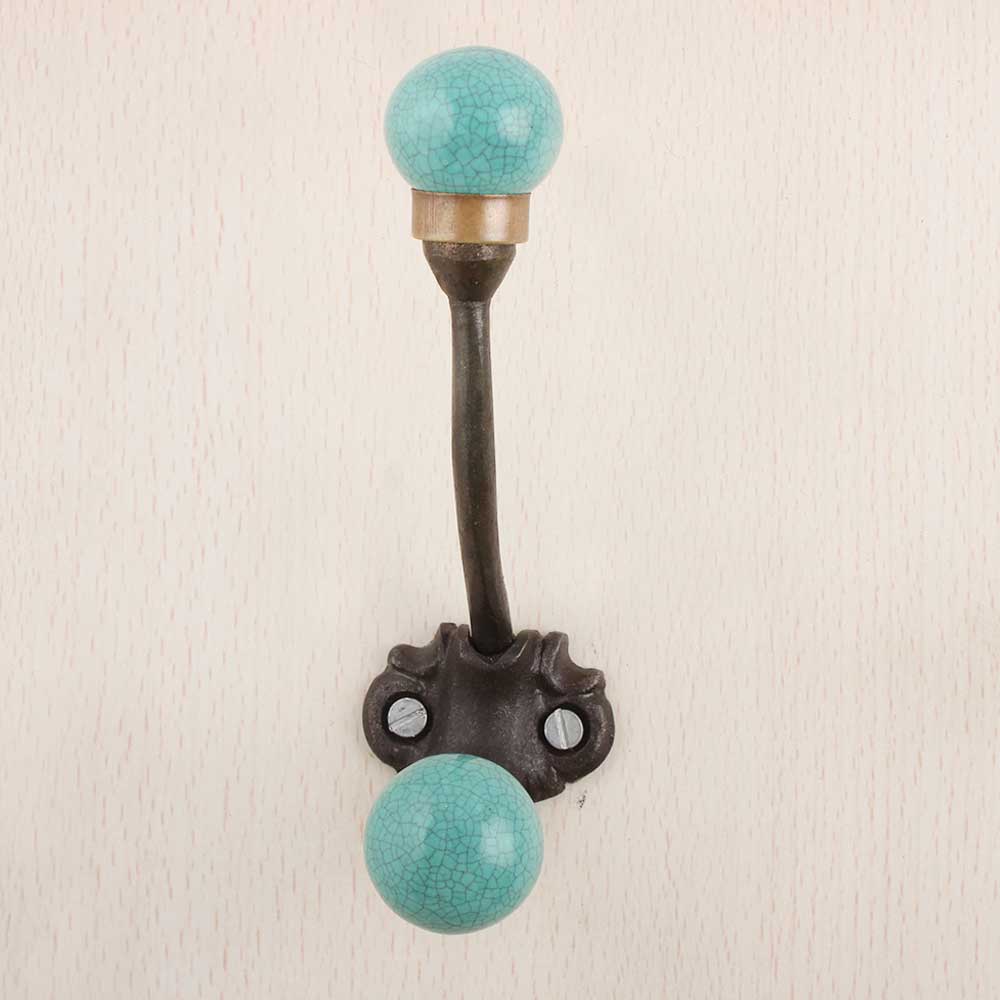 Sea Green Crackle Iron Hook . When Put on Wall or Cabinet It Gives A Sturdy Look. This Hook is Strong Enough to Hold Your Cloths, Keys, Tea Cups, Coffee Mugs, Hand Towels Etc.