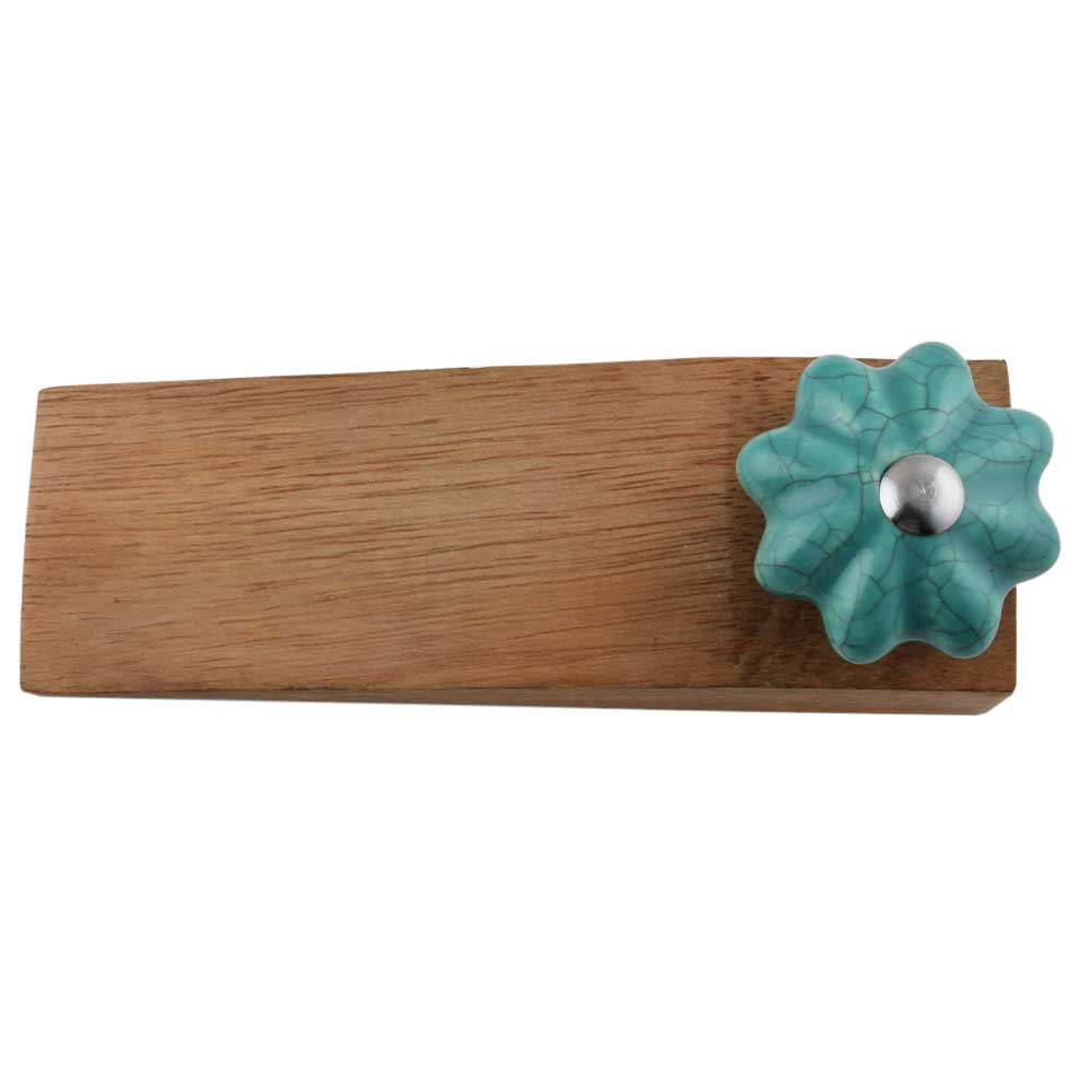 Handmade Ceramic and Wooden Door Stopper.Wooden Door Stopper with a Ceramic Knob to Carry it Easily. This Wooden Door Stopper has Glue Dots under it to Ensure that it does not Slip. It is Handmade by the Craftsmen of India and this Innovative Door Stopper won't Disappoint You.