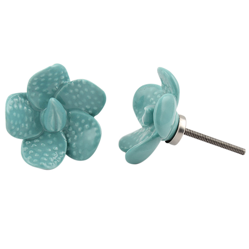 Whether you’re revamping your furniture or giving an entire room a makeover, these knobs are a fantastic way to add style and character. The unique flower design and sea green color brighten any space, making it feel more welcoming and cheerful.