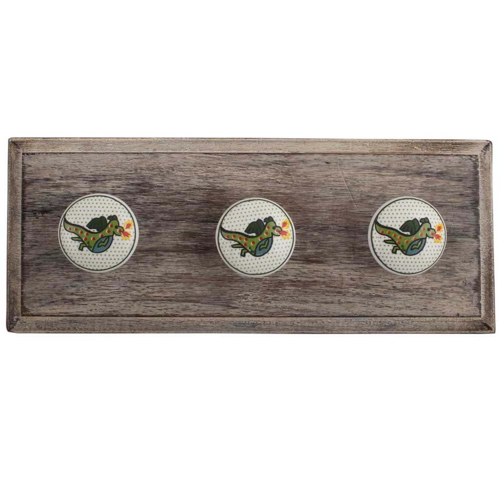 Sea Green Dragon Ceramic Flat Wooden Hook. A Perfect Complement to the Soft Tone of the Wood are these White Traditional Hat & Coat Hook Made of Genuine Porcelain and Brass. It can be use to Hang Jewellery, Leashes, Towels, Scarves, Light Weight Sweaters, Caps Etc.
