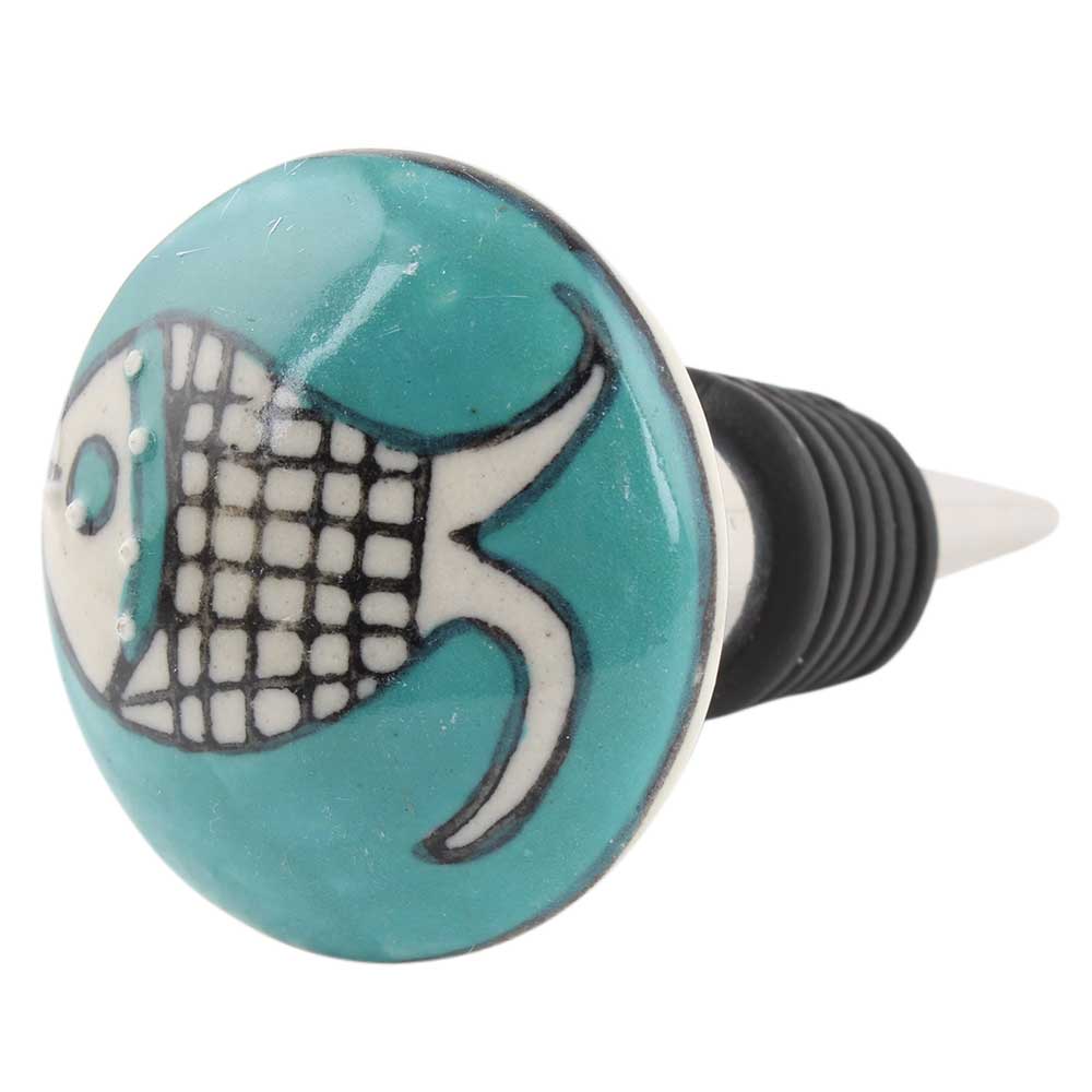 Sea Green Fish Ceramic Wine Bottle Stopper. Zinc Alloy Wine Bottle Stopper with Attractive Jute Bag Packaging.