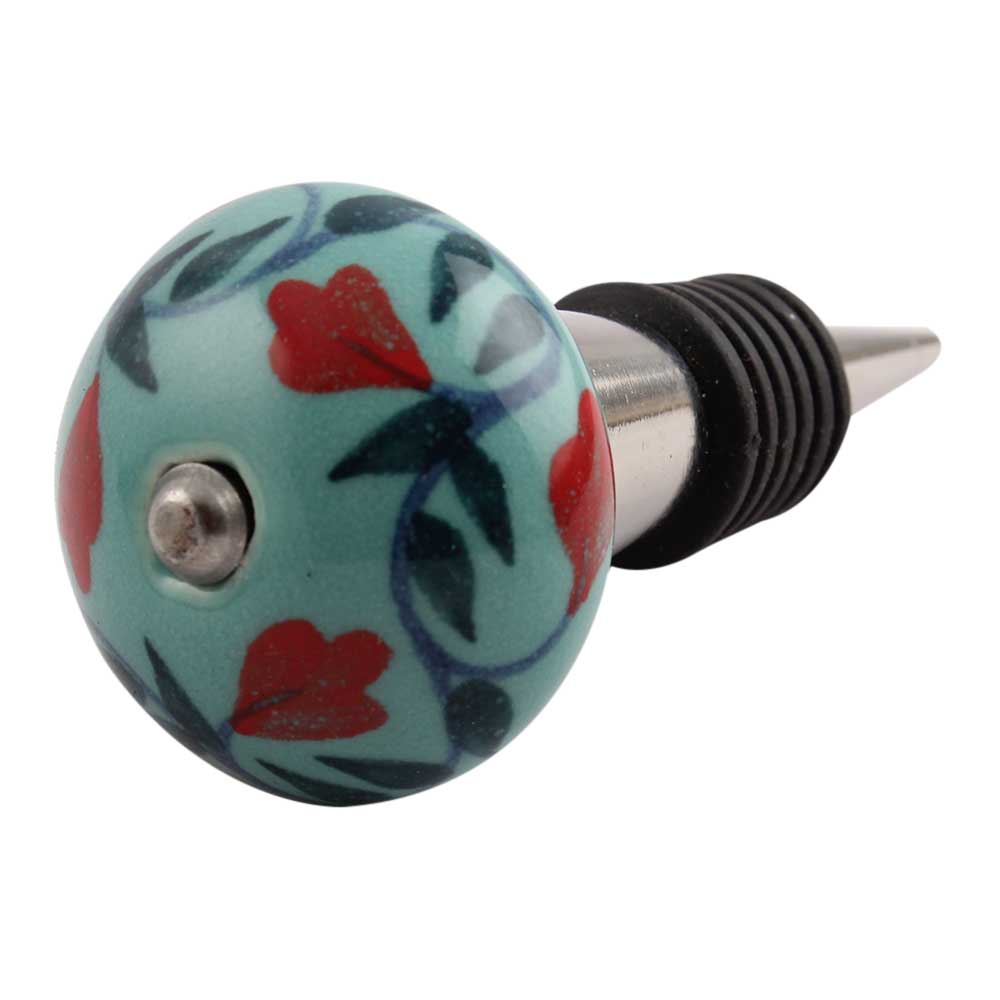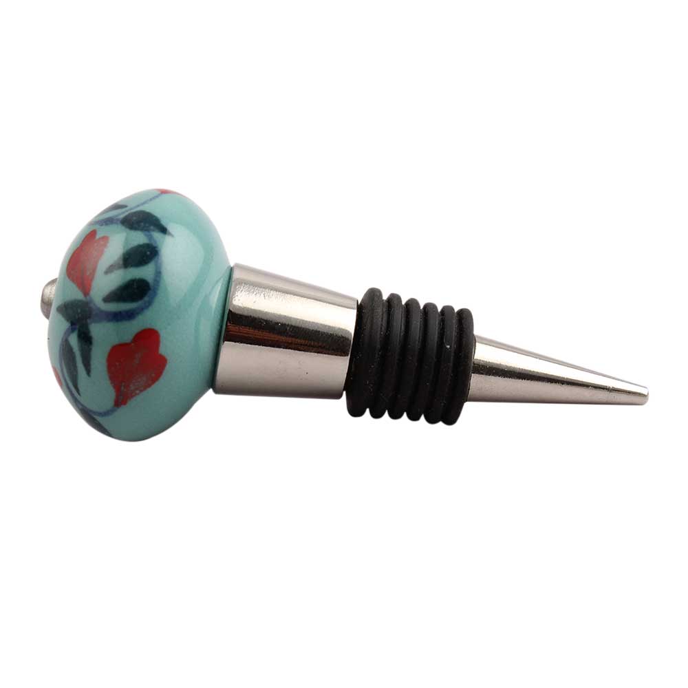 Sea Green Flower Ceramic Wine Stopper.zinc alloy wine bottle stopper with attractive Jute Bag Packaging.