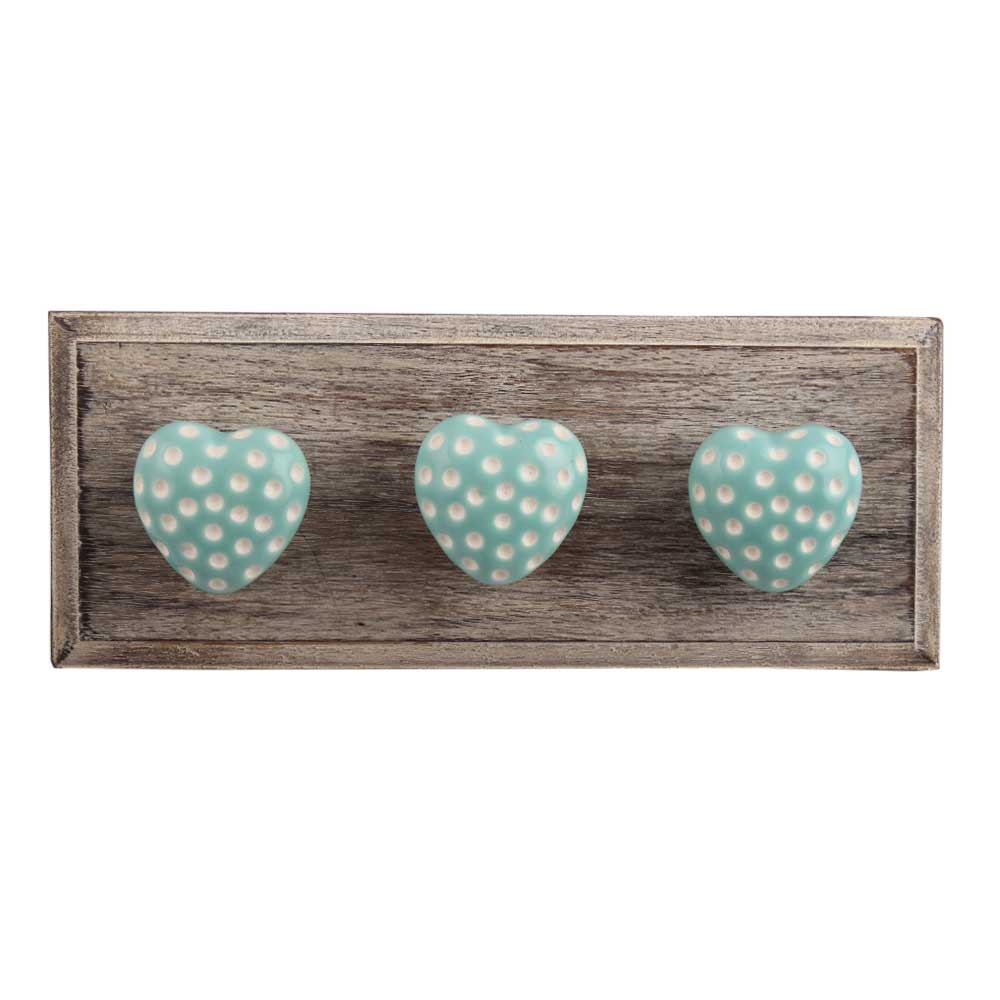 Sea Green Heart Etched Ceramic Wooden Hook. A Perfect Complement to the Soft Tone of the Wood are these White Traditional Hat &Amp; Coat Hook Made of Genuine Porcelain and Brass. It can be use to Hang Jewellery, Leashes, Towels, Scarves, Light Weight Sweaters, Caps Etc.
