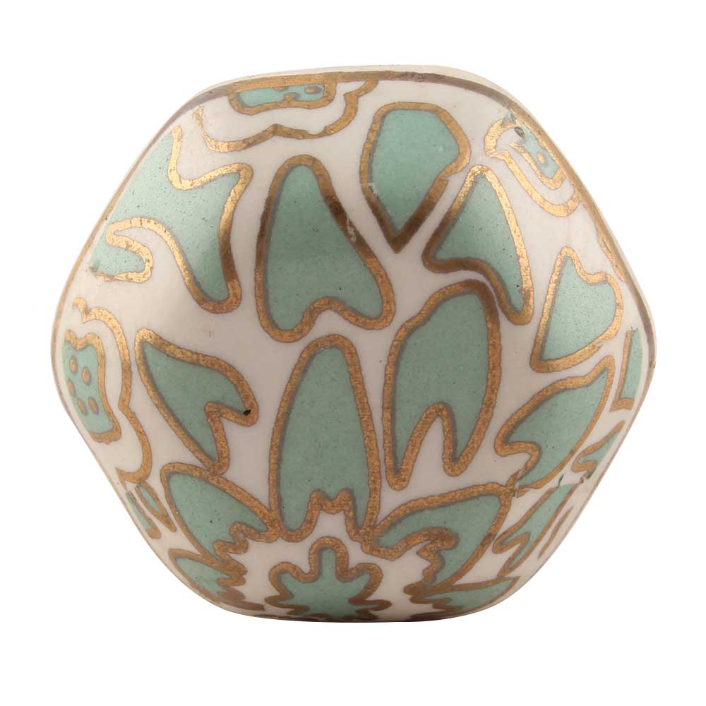 Sea Green Hexagon Small Ceramic Wine Stopper. Zinc Alloy Wine Bottle Stopper with Attractive Jute Bag Packaging.
