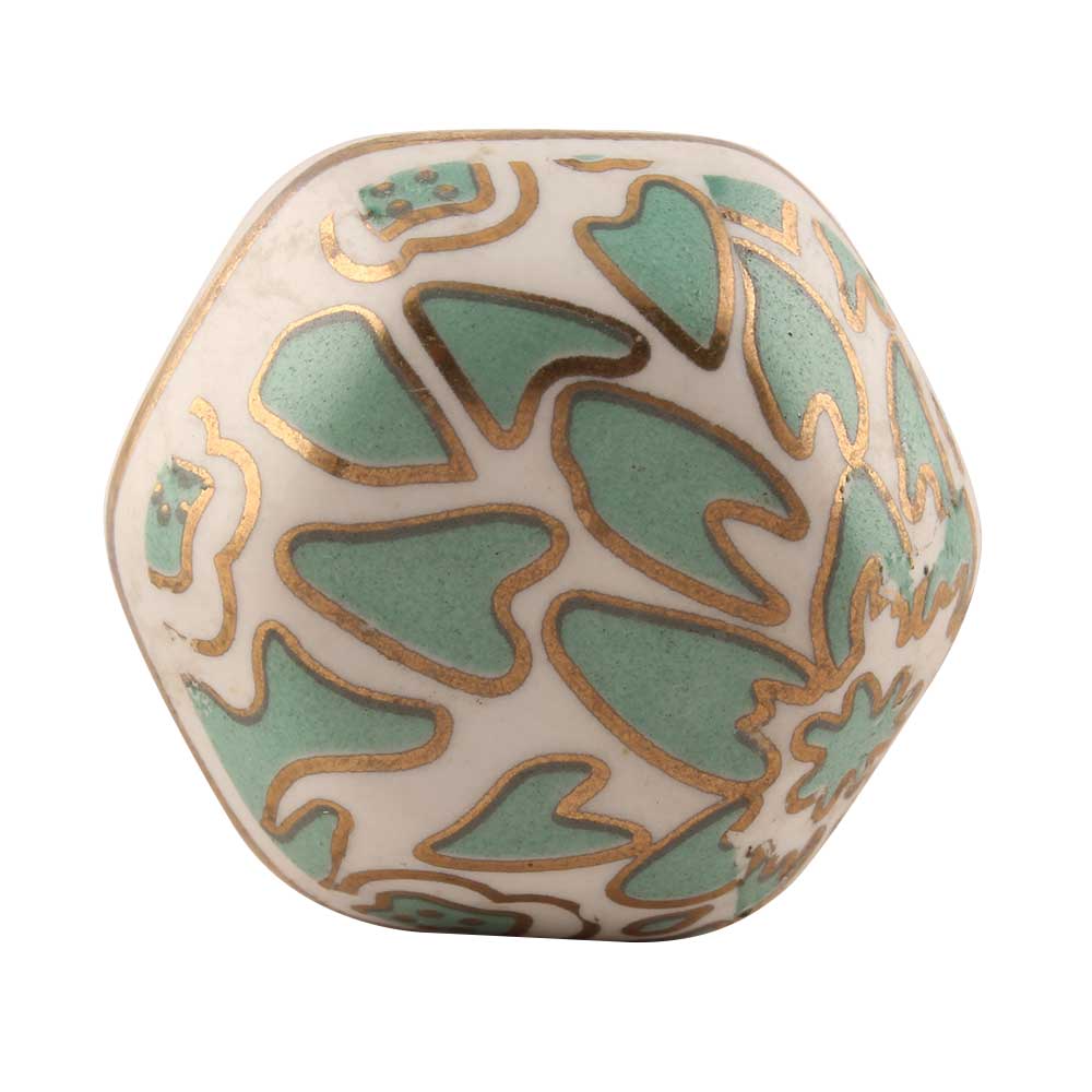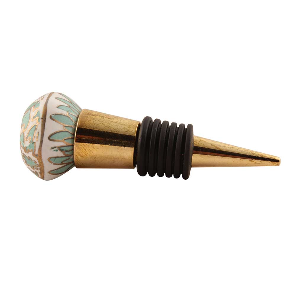 Sea Green Hexagon Small Ceramic Wine Stopper in Golden Fitting. Zinc Alloy Wine Bottle Stopper with Attractive Jute Bag Packaging.
