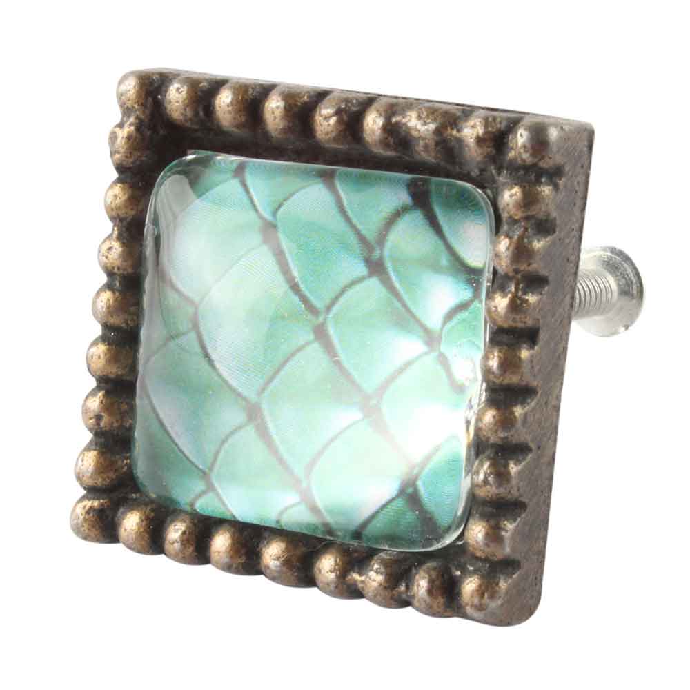 Sea Green Inside Pattern Square Iron Glass Dresser knob. Ideal for Drawer, Dresser, Cabinet, Wardrobe, Cupboard and Almirah.