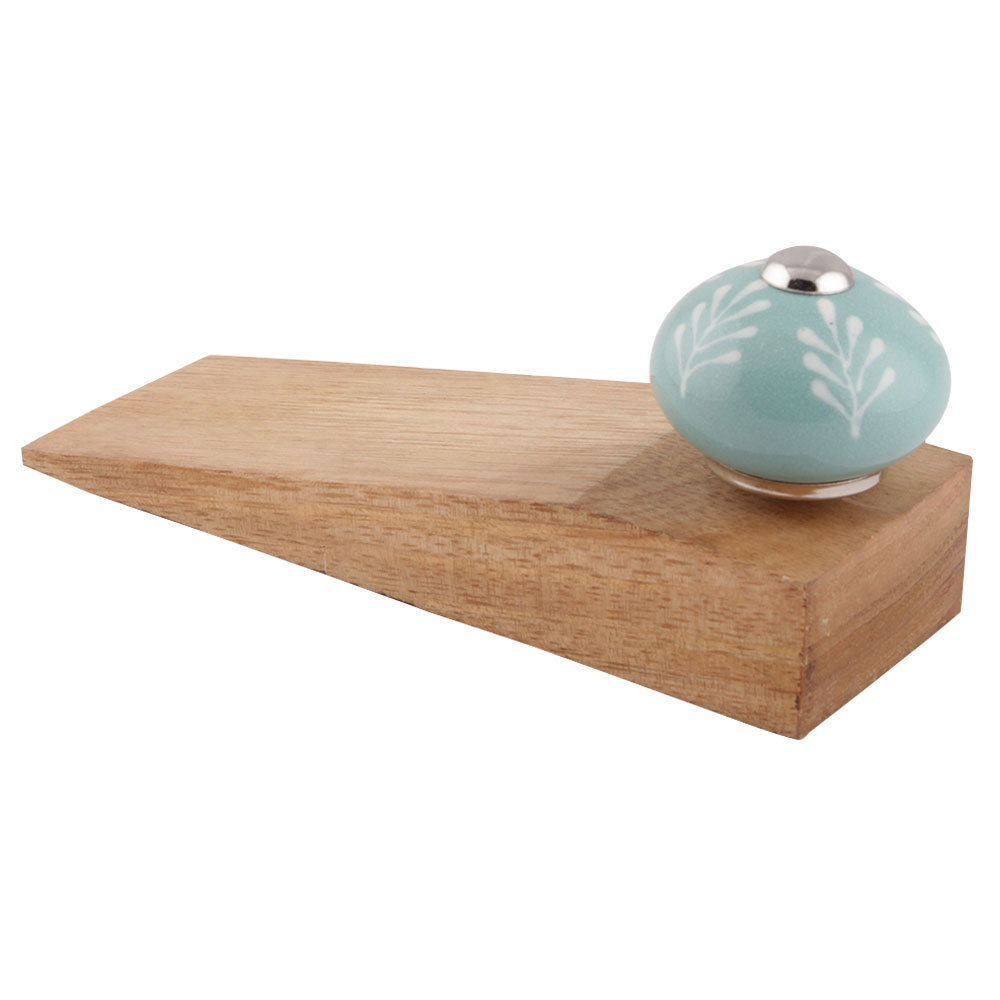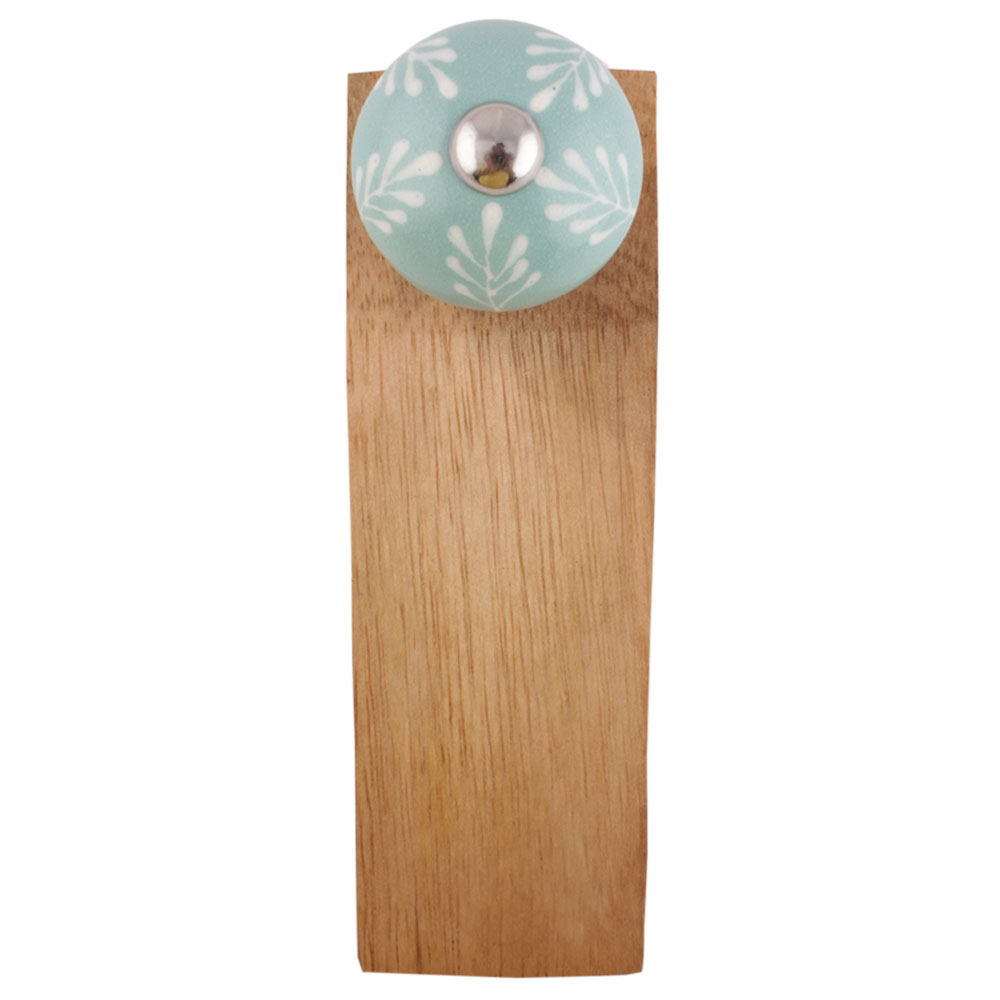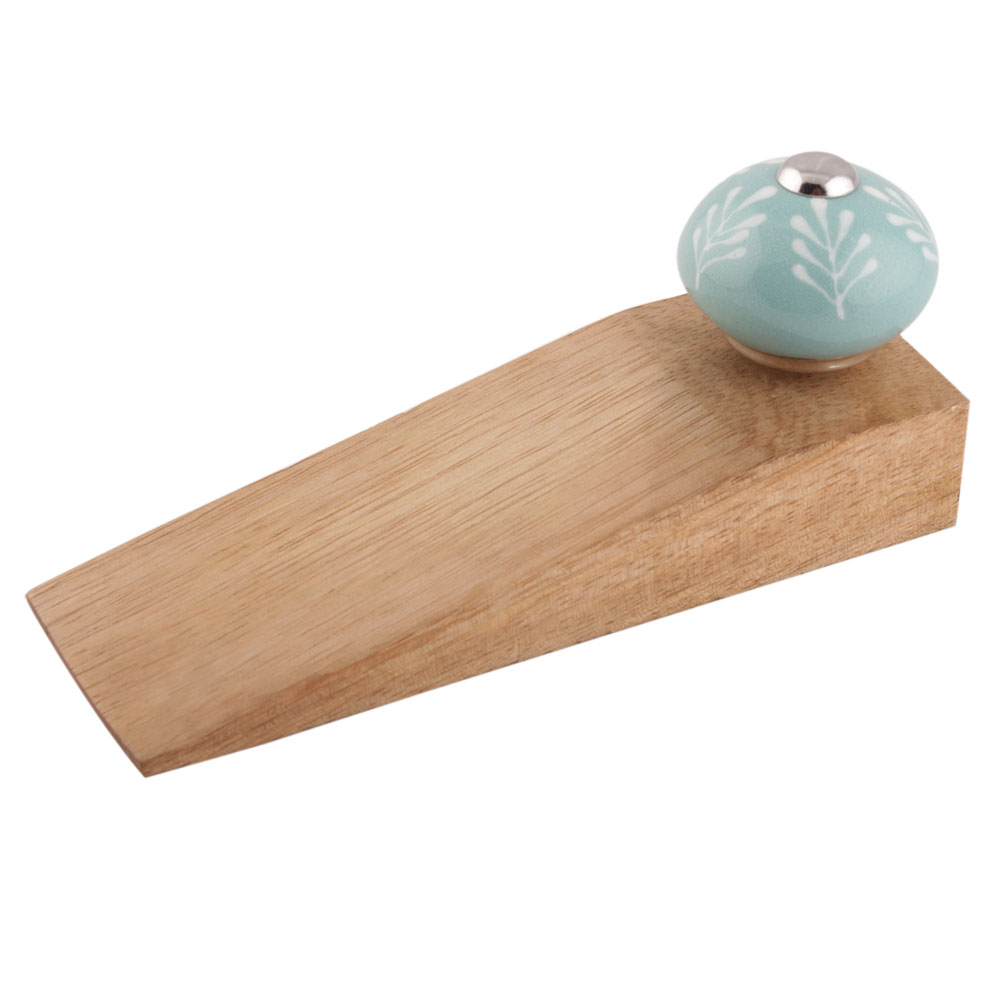 Handmade Ceramic and Wooden Door Stopper.Wooden Door Stopper with a Ceramic Knob to Carry it Easily. This Wooden Door Stopper has Glue Dots under it to Ensure that it does not Slip. It is Handmade by the Craftsmen of India and this Innovative Door Stopper won't Disappoint You.