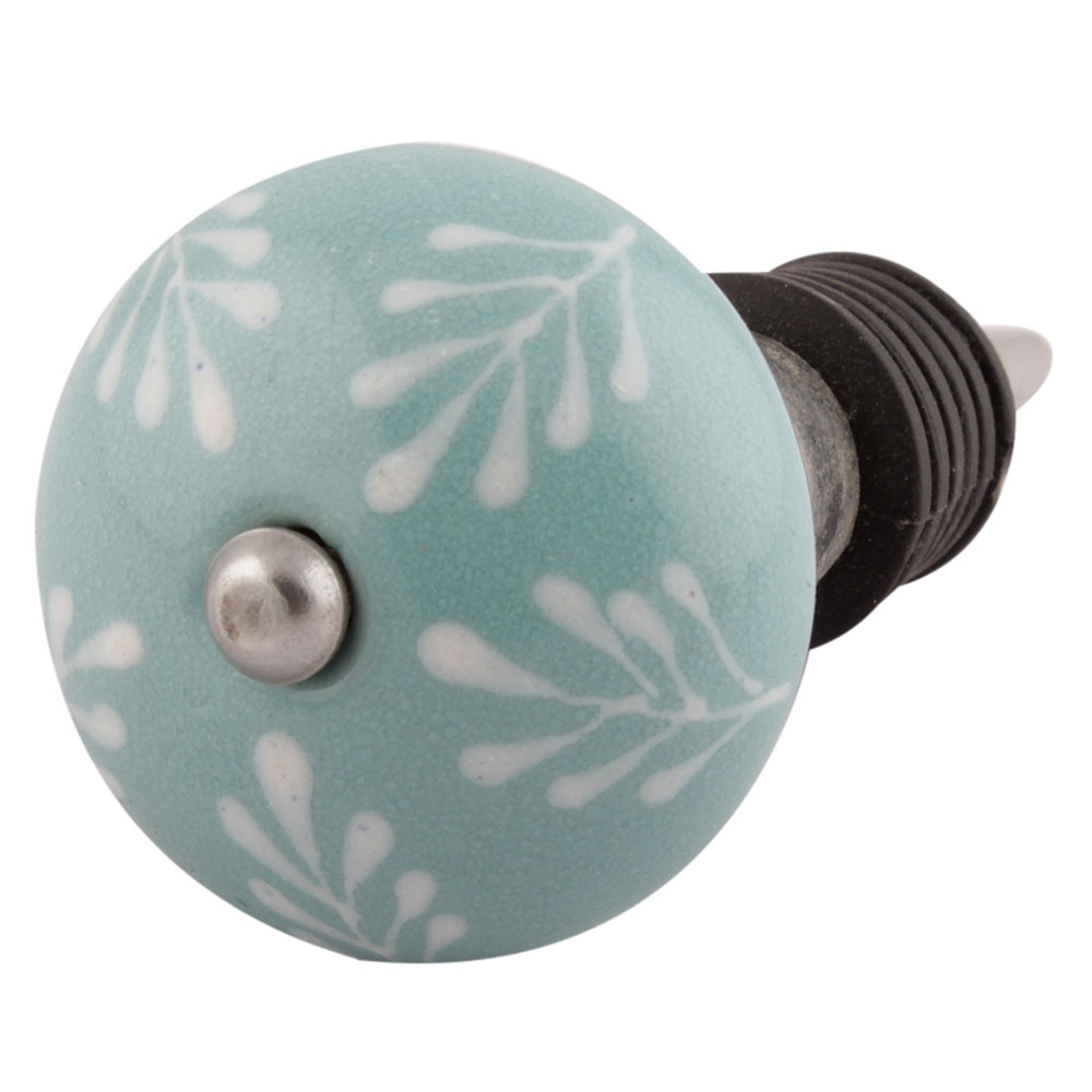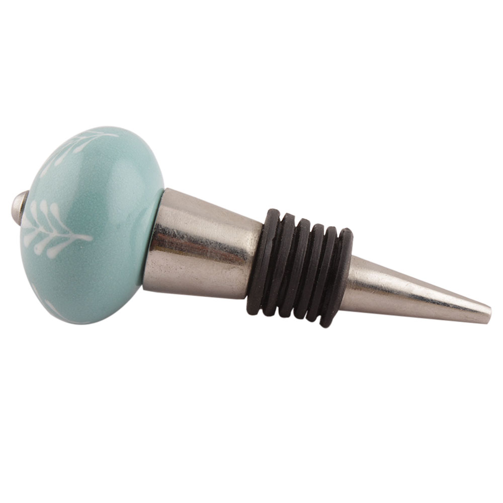 Sea Green Leaf Floral Ceramic Wine Stopper. Zinc Alloy Wine Bottle Stopper with Attractive Jute Bag Packaging.