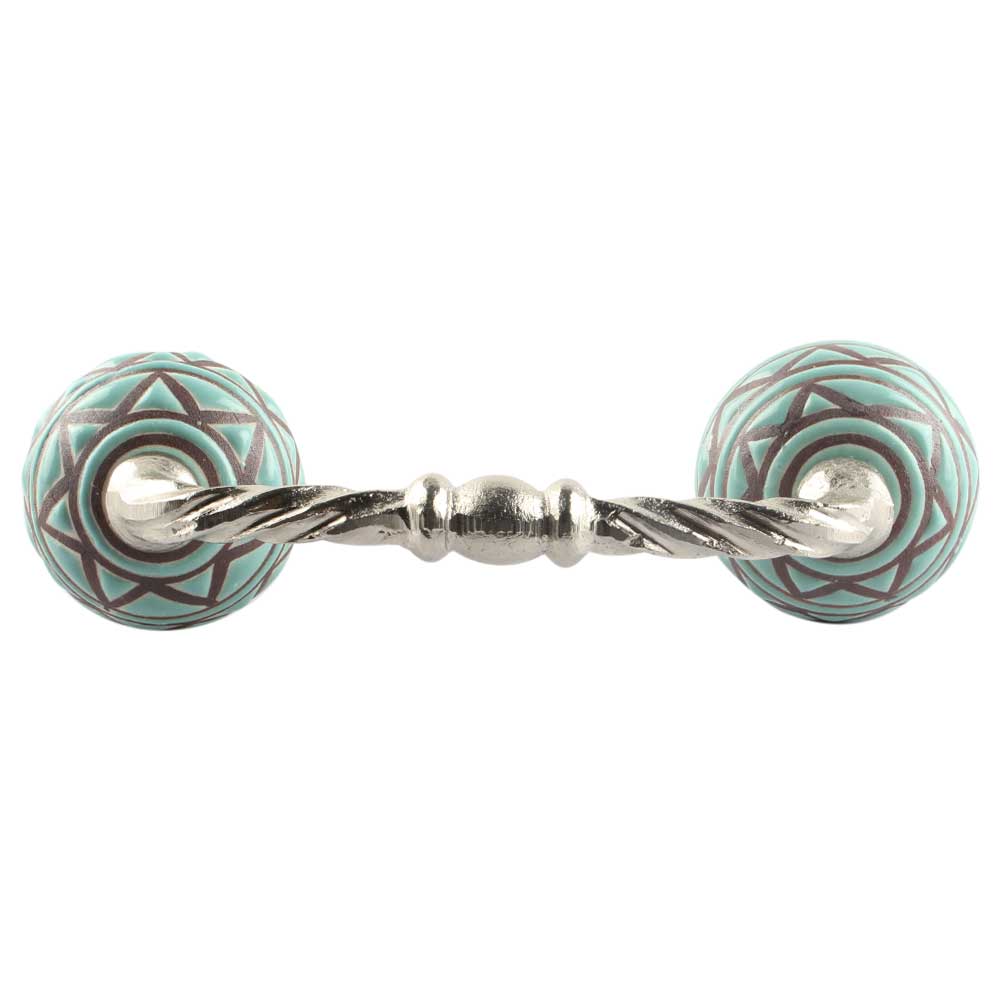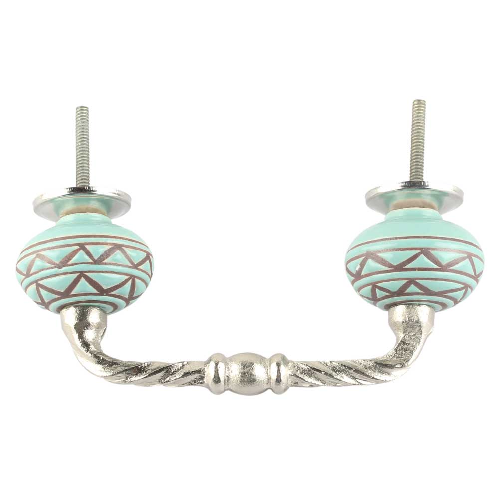Sea Green Pattern Etched Ceramic Cut Bridge Handle. Ideal for Drawer, Dresser, Cabinet, Wardrobe, Cupboard and Almirah etc.