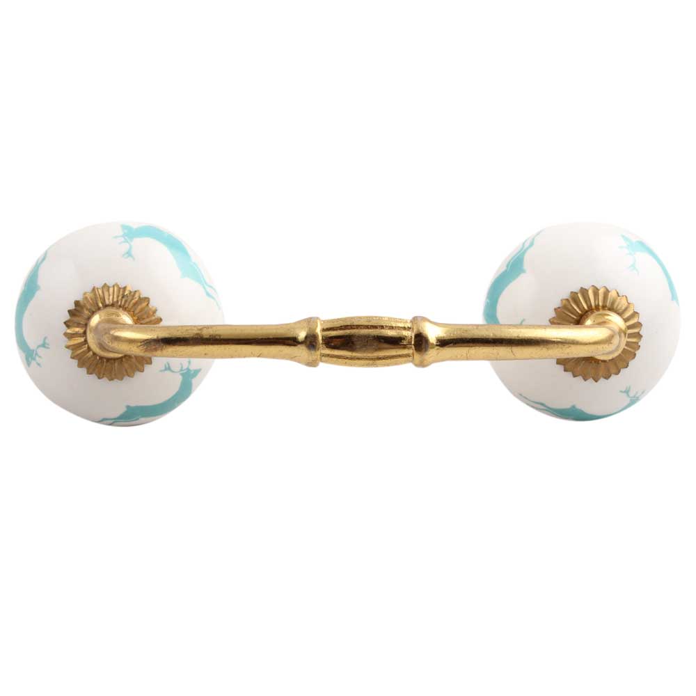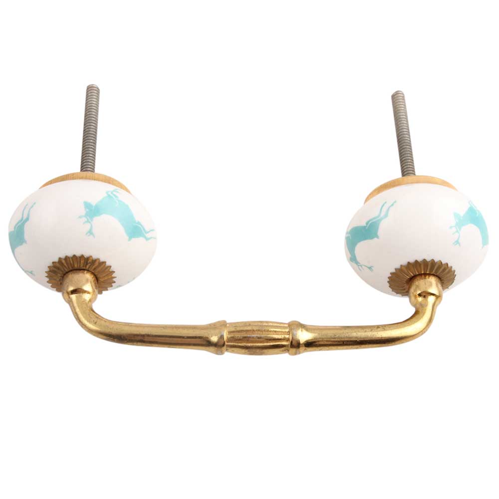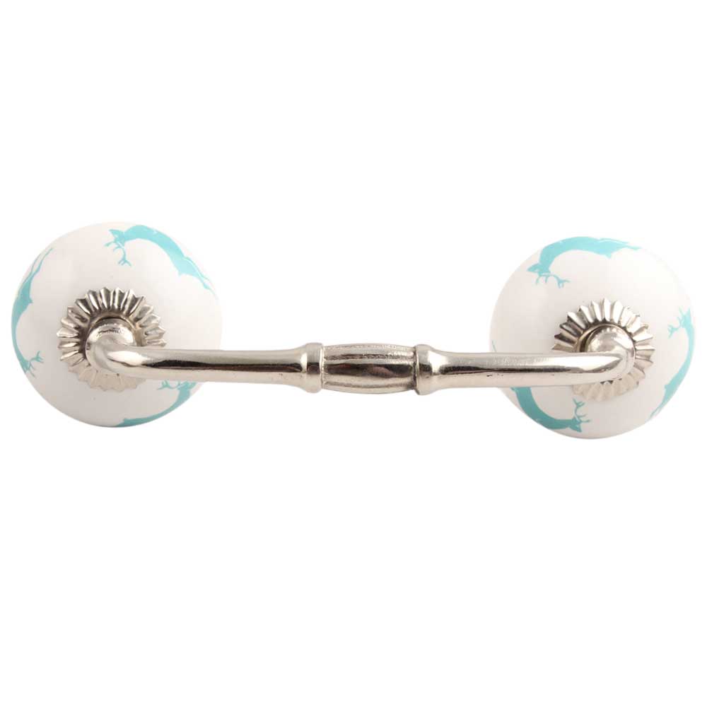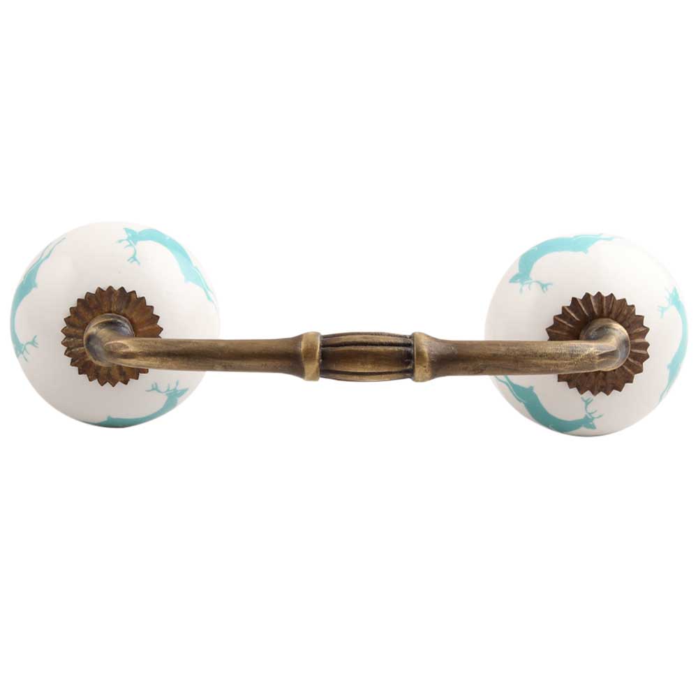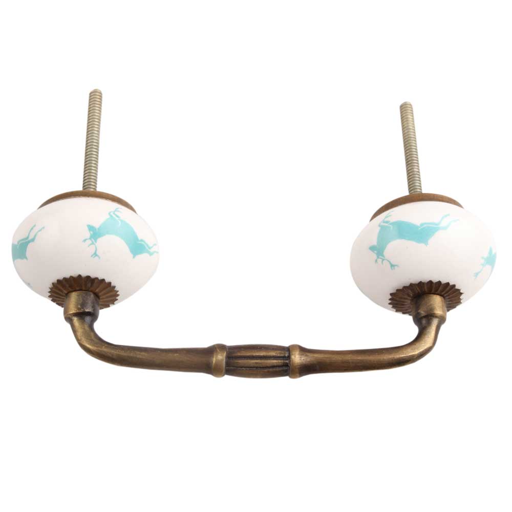 Sea Green Running Rein Deer Pattern Ceramic Bridge Handle. Ideal for Drawer, Dresser, Cabinet, Wardrobe, Cupboard and Almirah.