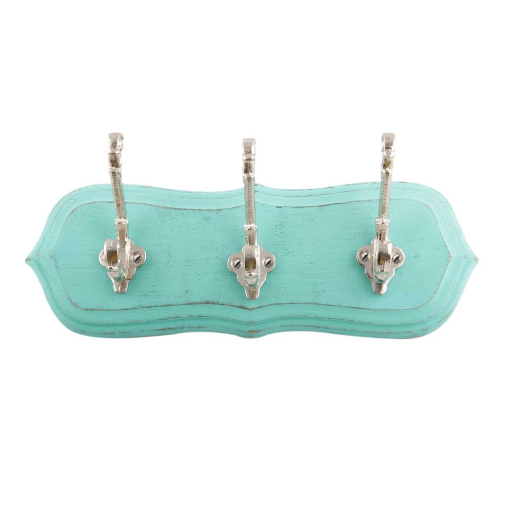 Sea Green And Silver Small Wall Wooden Iron Hooks. A Perfect Complement to the Soft Tone of the Wood are these White Traditional Hat & Coat Hook Made of Genuine Porcelain and Brass. It can be use to Hang Jewellery, Leashes, Towels, Scarves, Light Weight Sweaters, Caps Etc.