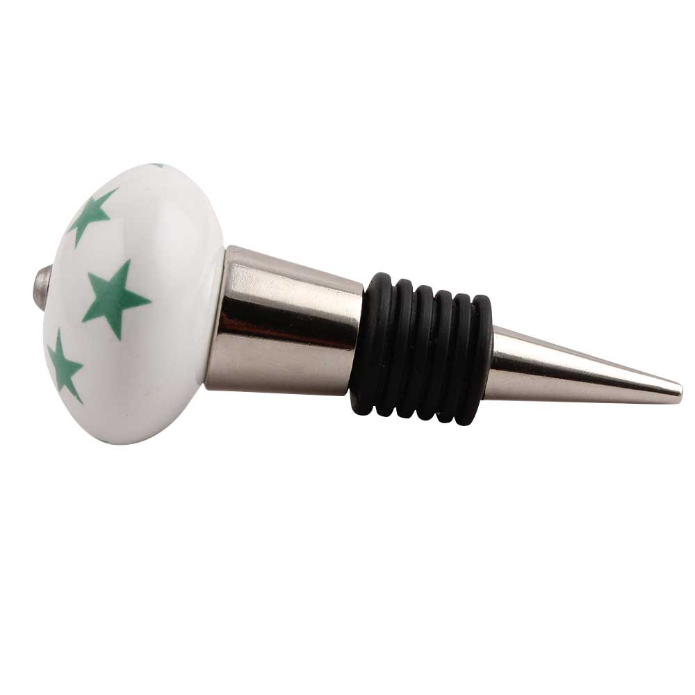Sea Green Star Ceramic Wine Stopper.zinc alloy wine bottle stopper with attractive Jute Bag Packaging.
