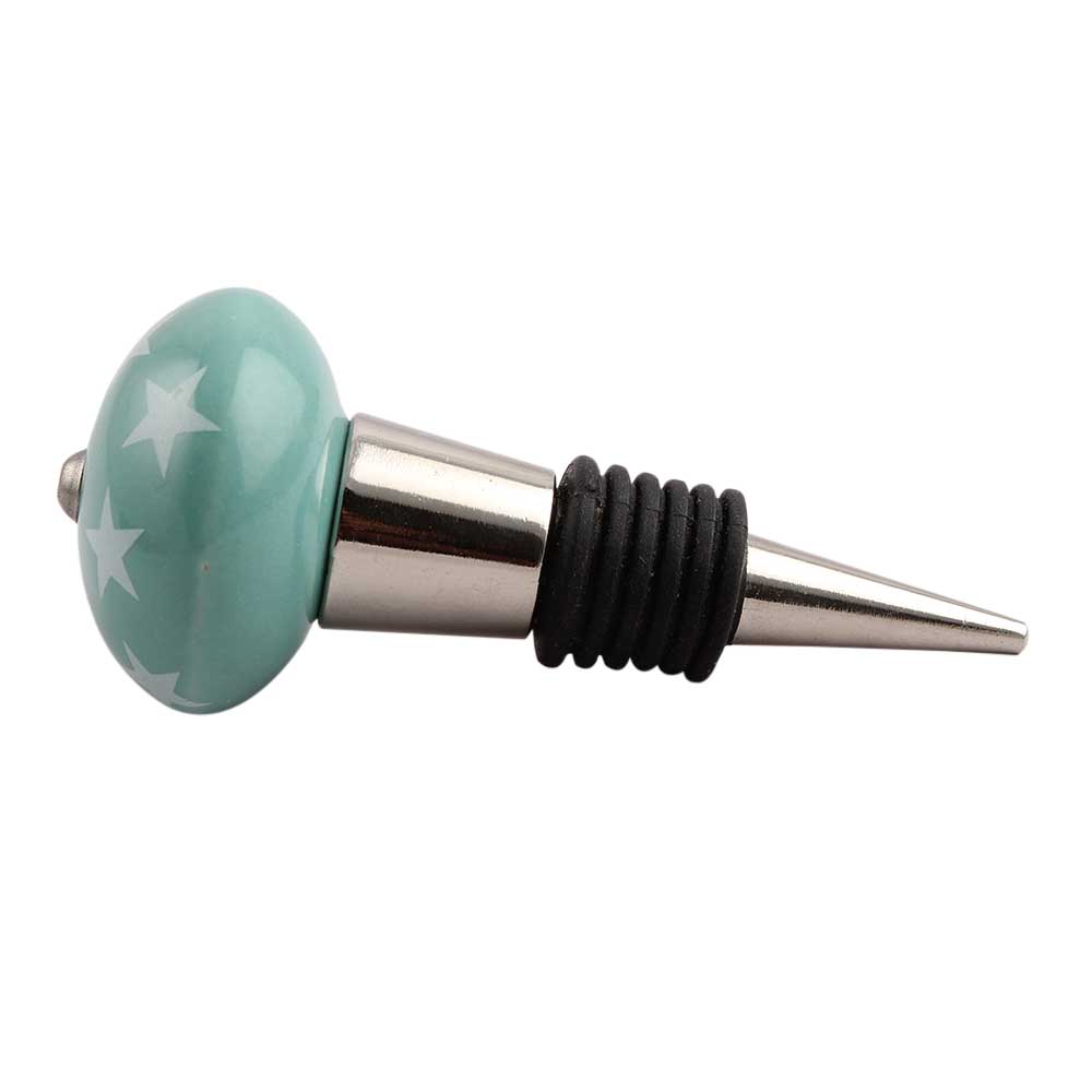 Sea Green Star Ceramic Wine Stopper.zinc alloy wine bottle stopper with attractive Jute Bag Packaging.