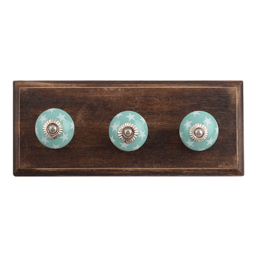 Sea Green Star Ceramic Wooden Hook. A Perfect Complement to the Soft Tone of the Wood are these White Traditional Hat & Coat Hook Made of Genuine Porcelain and Brass. It can be use to Hang Jewellery, Leashes, Towels, Scarves, Light Weight Sweaters, Caps Etc.