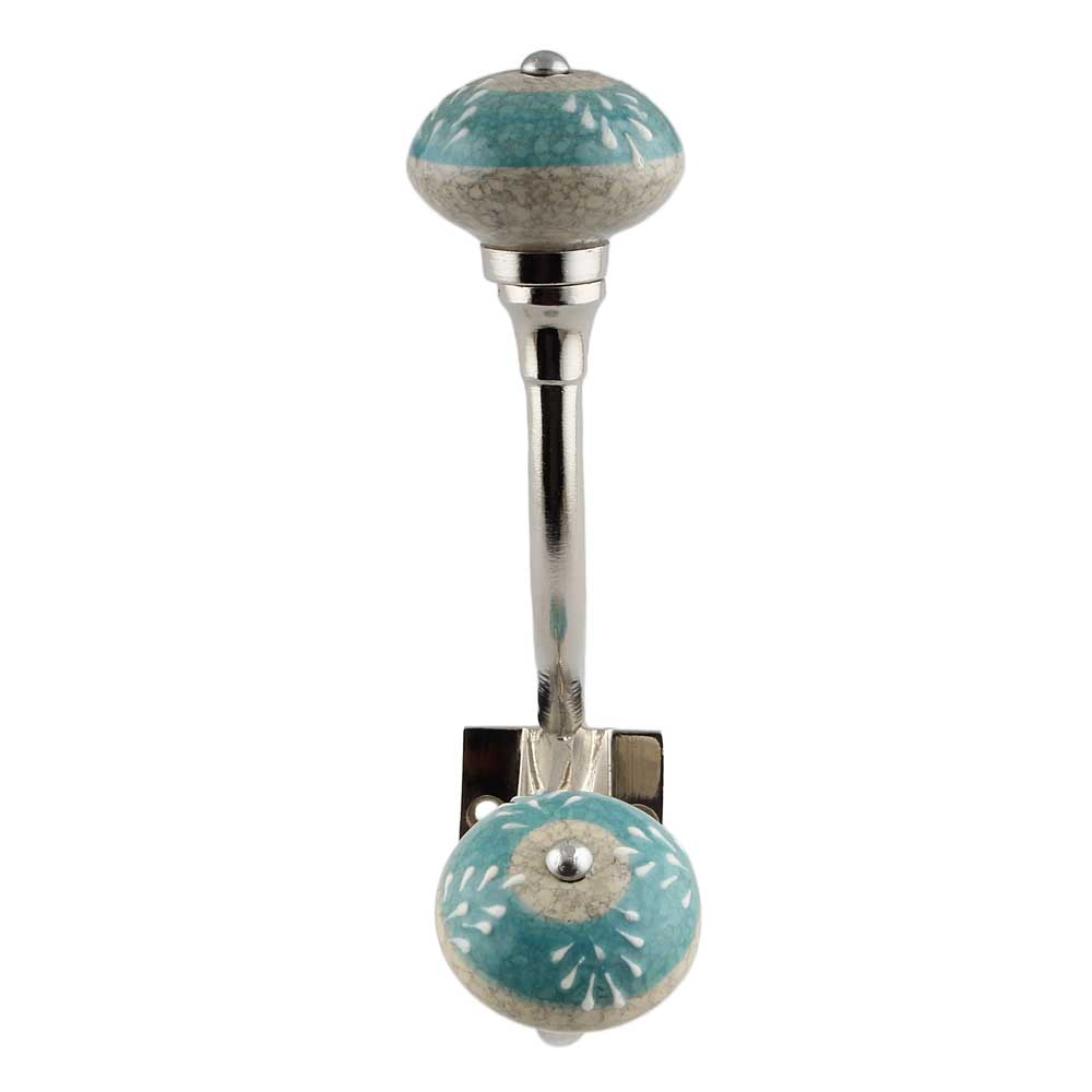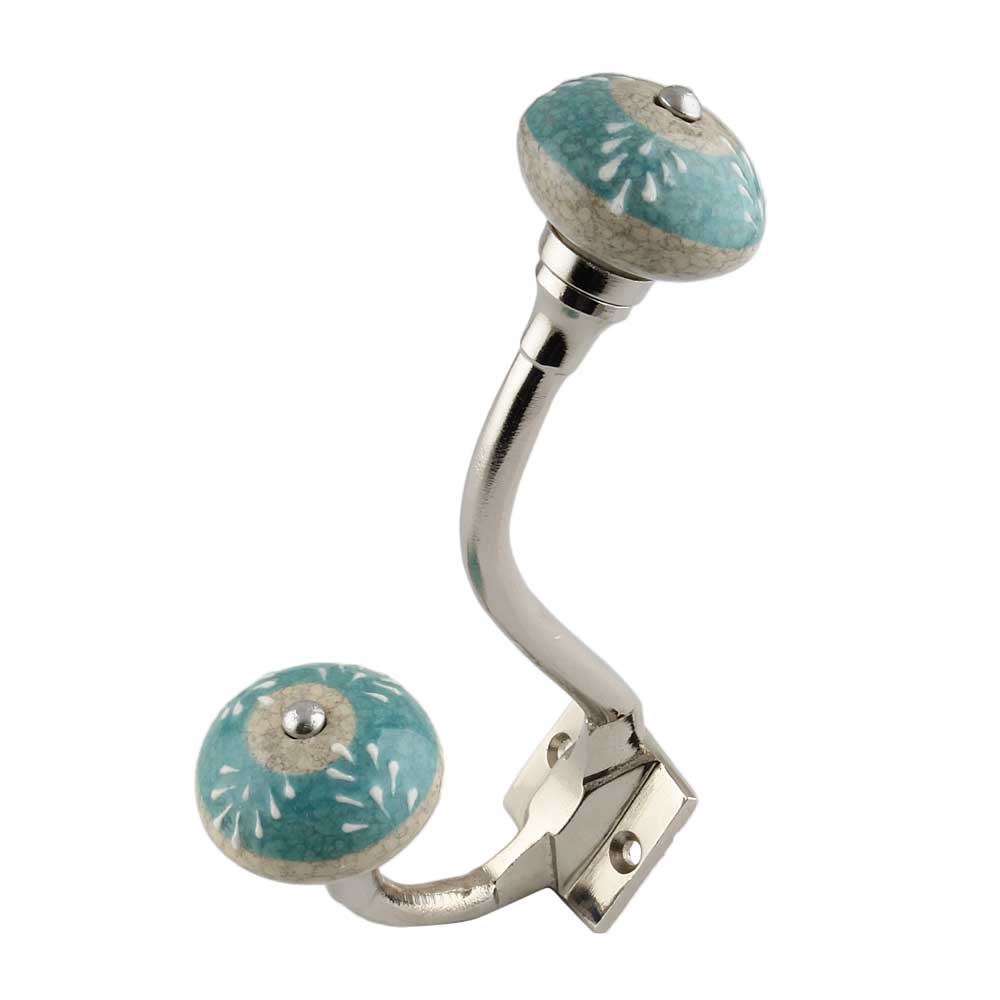 The Sea Green Striped Crackle Ceramic Silver Iron Hook brings the calming charm of coastal tones into your space while offering practical functionality. Featuring a hand-glazed ceramic knob with sea green stripes and a vintage crackle finish, this wall hook is mounted on a sleek silver-toned iron base. Its unique blend of texture, color, and craftsmanship makes it a standout accent for entryways, bathrooms, kitchens, or bedrooms—where beauty and organization go hand in hand.