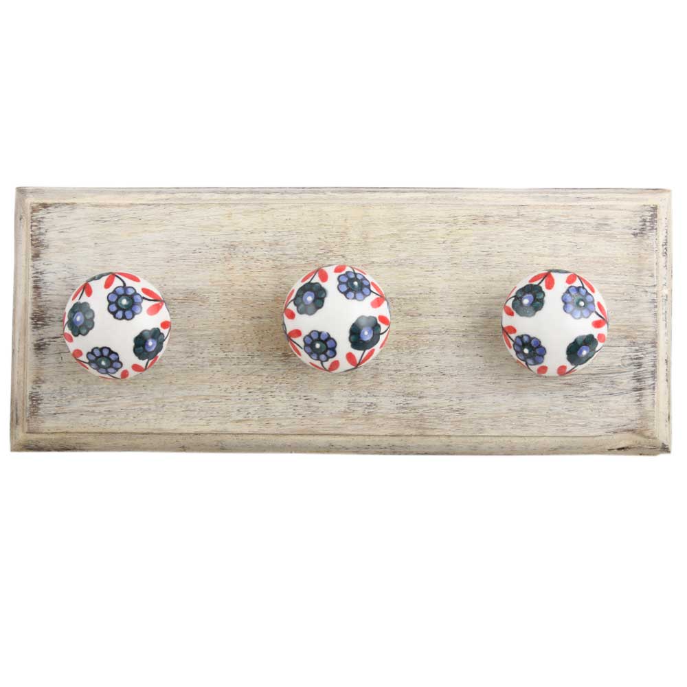 Sea Green Tiny Flower Ceramic Wooden Hook. A Perfect Complement to the Soft Tone of the Wood are these White Traditional Hat and Coat Hook Made of Genuine Porcelain and Brass. It can be used to Hang Jewelry, Leashes, Towels, Scarves, Light Weight Sweaters, Caps etc.