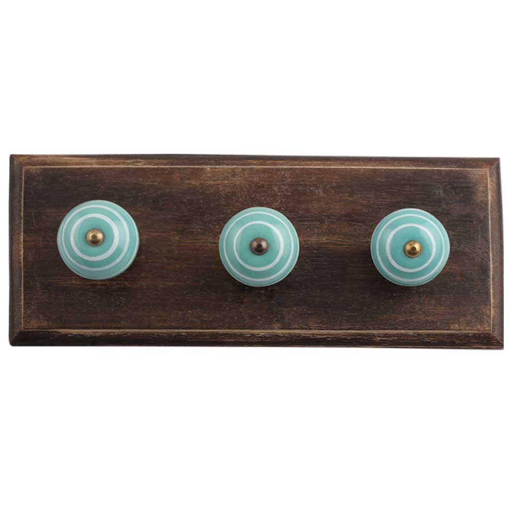 Sea Green White Strip Wooden Hooks