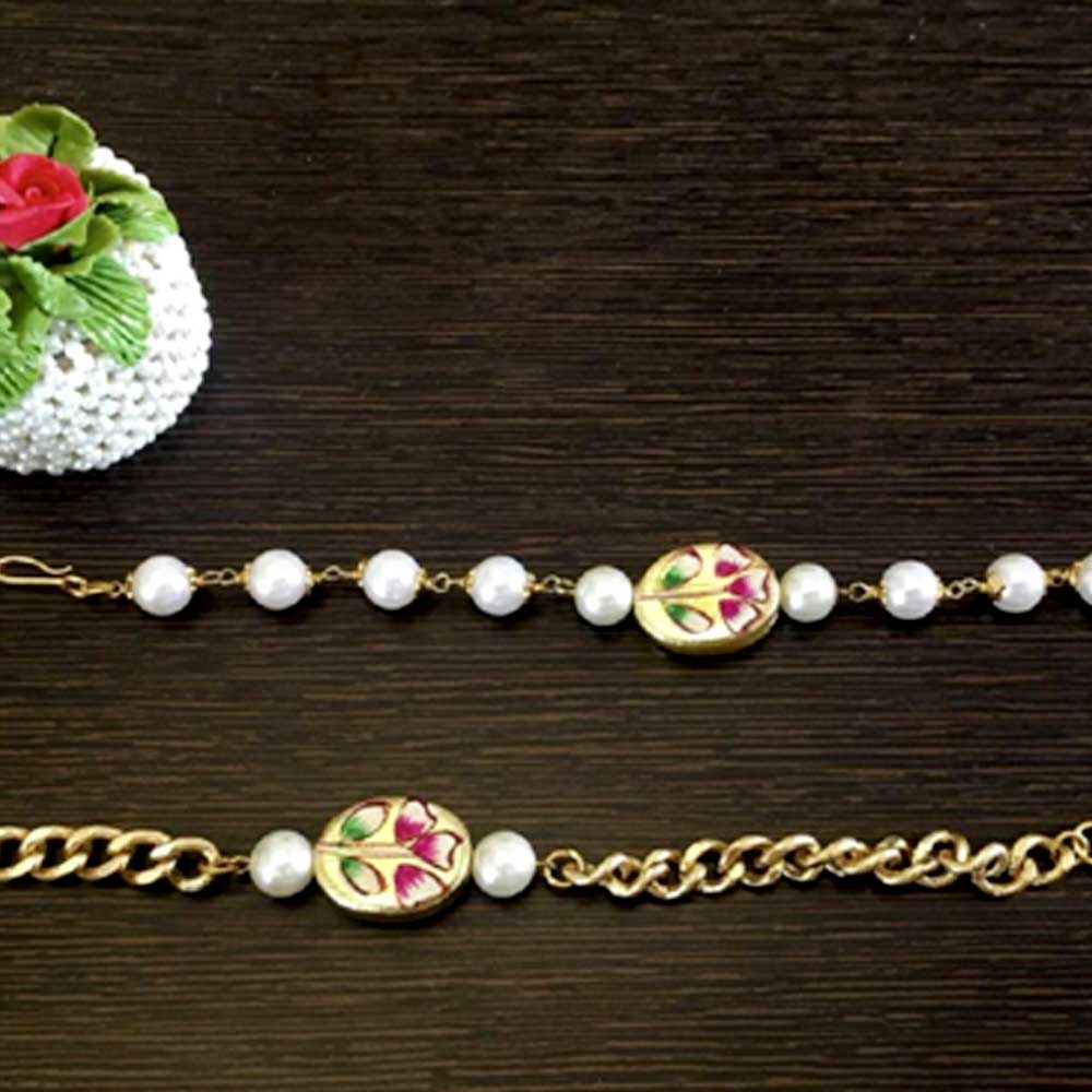 Ralkhi + Lumba set - Hand painted gold polish center piece with premium metal chain and ganthan.