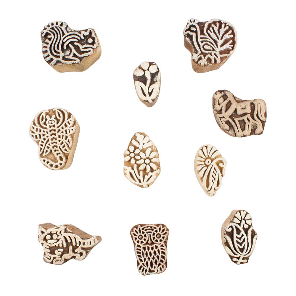 Set of 10 Piece New Mix Wooden Printing Block. Ideal for use on Fabric, Paper, Canvas, etc. These Blocks can be use to Print with Oil Colors, Fabric Colors, Water Colors, Acrylic Colors and Vegetable Colors.
