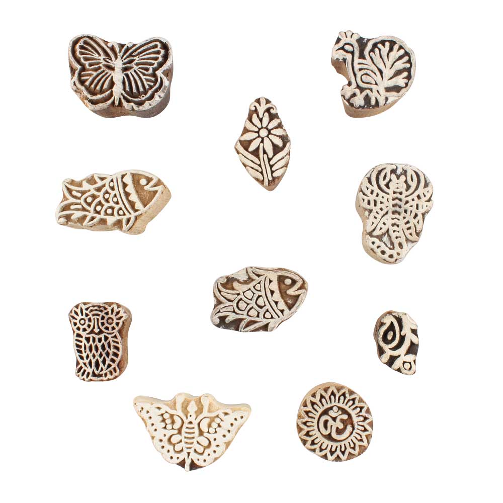 Set of 10 Piece New Mix Wooden Printing Block. Ideal for use on Fabric, Paper, Canvas, etc. These Blocks can be use to Print with Oil Colors, Fabric Colors, Water Colors, Acrylic Colors and Vegetable Colors.