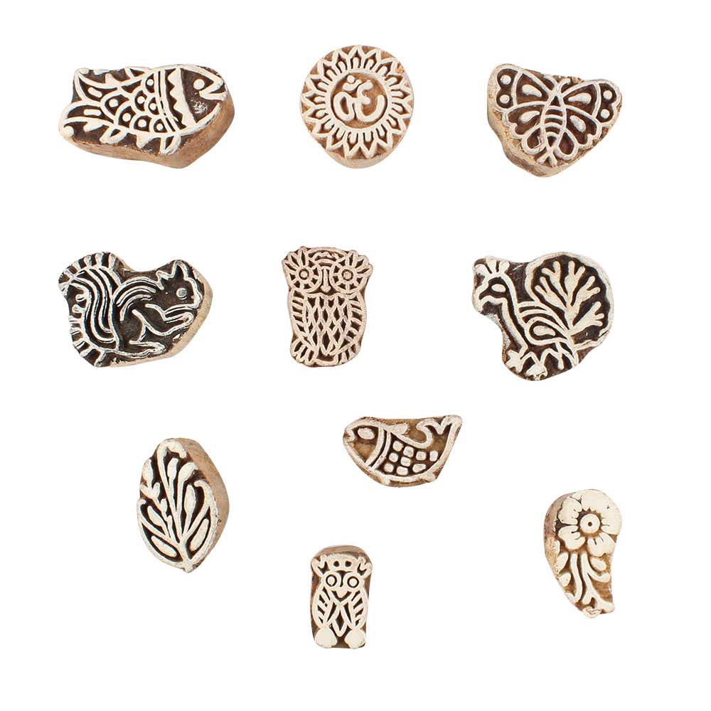 Set of 10 Piece New Mix Wooden Printing Block. Ideal for use on Fabric, Paper, Canvas, etc. These Blocks can be use to Print with Oil Colors, Fabric Colors, Water Colors, Acrylic Colors and Vegetable Colors.