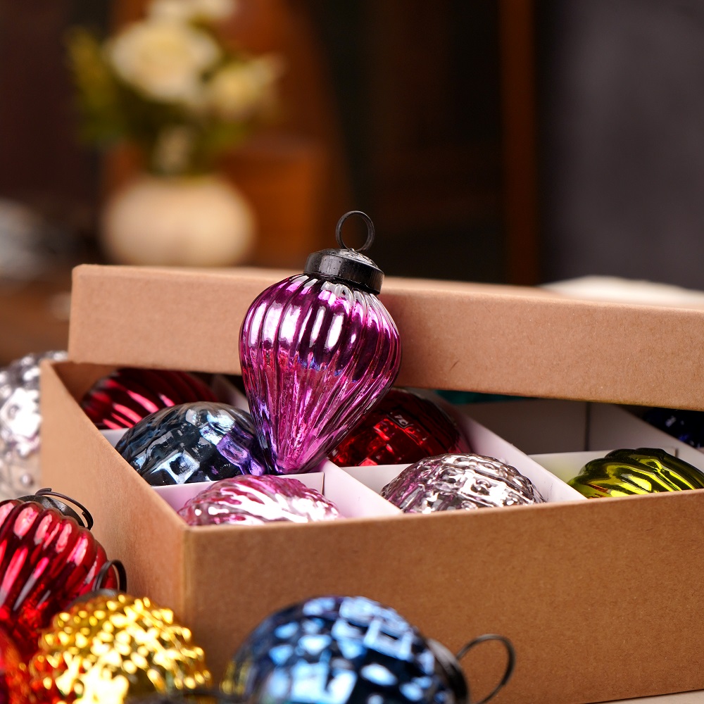 The glass construction of these ornaments gives them a timeless, vintage appeal. They’re perfect for adding a traditional touch to your Christmas tree or mixing with other modern decorations. The set’s mix of colors creates a harmonious and festive display that will be a focal point of your holiday celebrations.