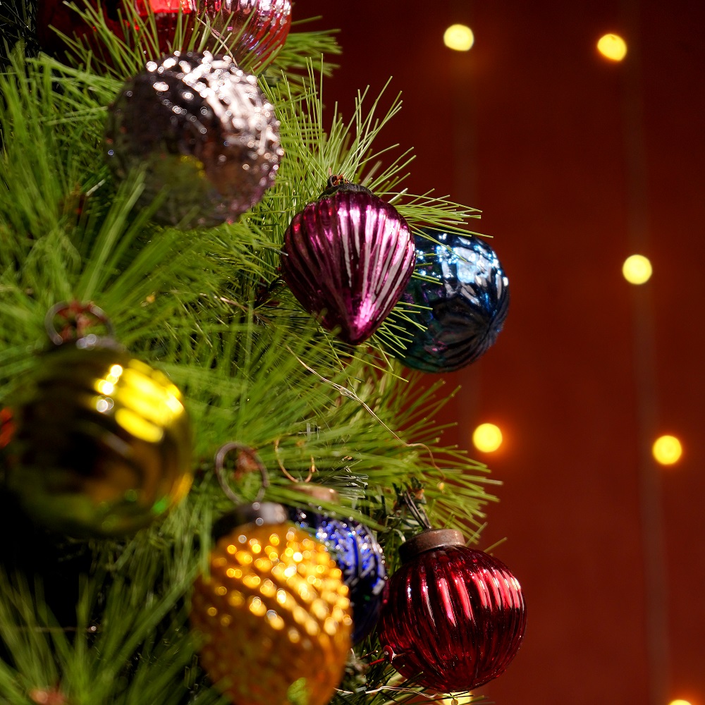 These multicolor glass ornaments are not only eye-catching but also add a reflective quality to your tree. Their glossy finish creates a warm glow when lit, bringing an extra layer of sparkle to your decorations. The set of 12 ensures your tree will be beautifully adorned, no matter its size.