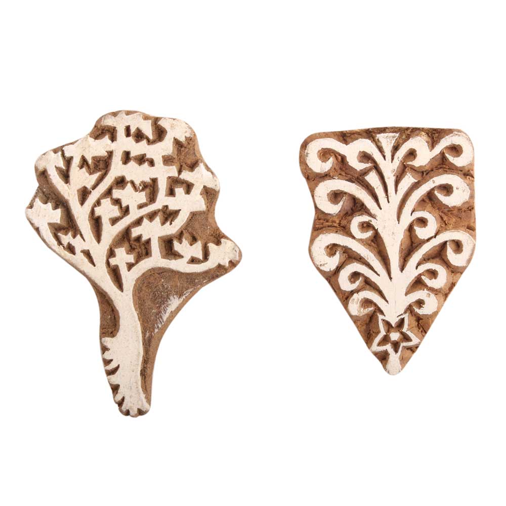 Set of 2 Piece New Mix Wooden Printing Block. Ideal for Using on Fabric, Paper, Canvas, etc. These Blocks can be use to Print with Oil Colors, Fabric Colors, Water Colors, Acrylic Colors and Vegetable Colors.