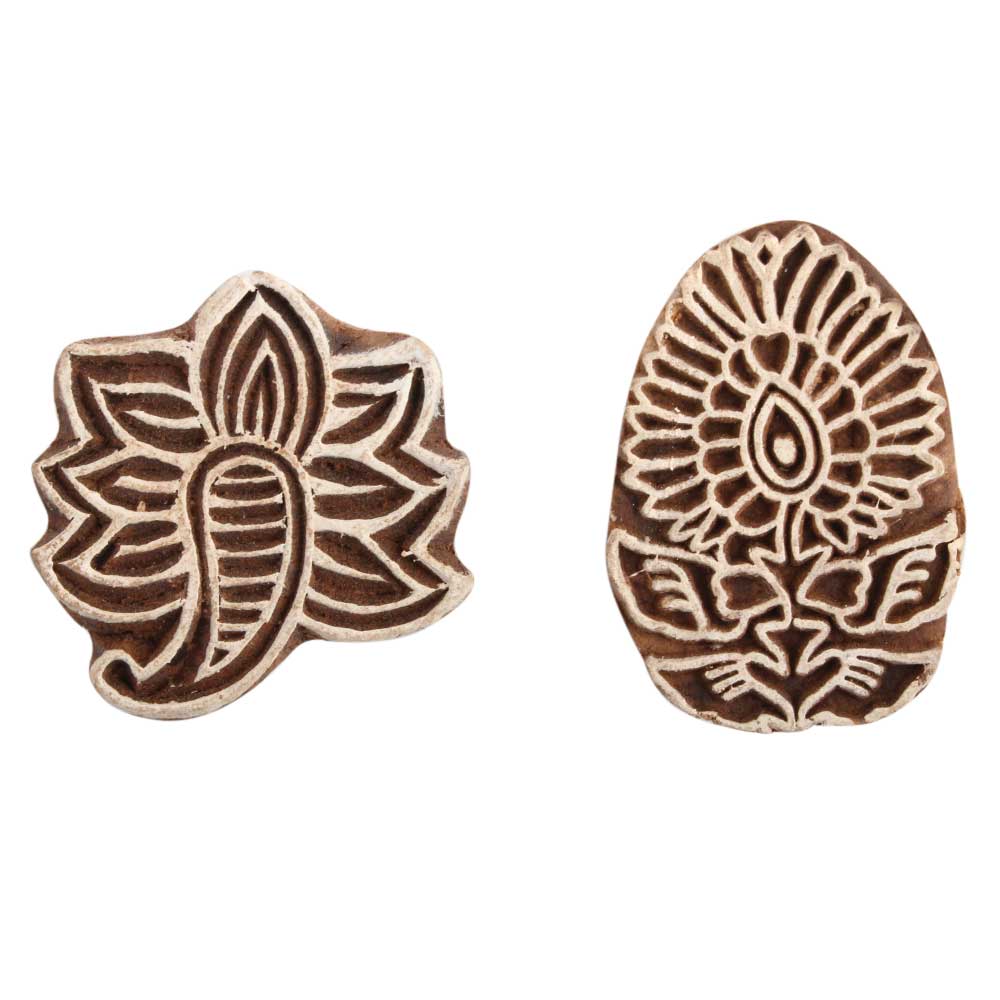 Set of 2 Piece New Mix Wooden Printing Block. Ideal for use on Fabric, Paper, Canvas, etc. These Blocks can be use to Print with Oil Colors, Fabric Colors, Water Colors, Acrylic Colors and Vegetable Colors.