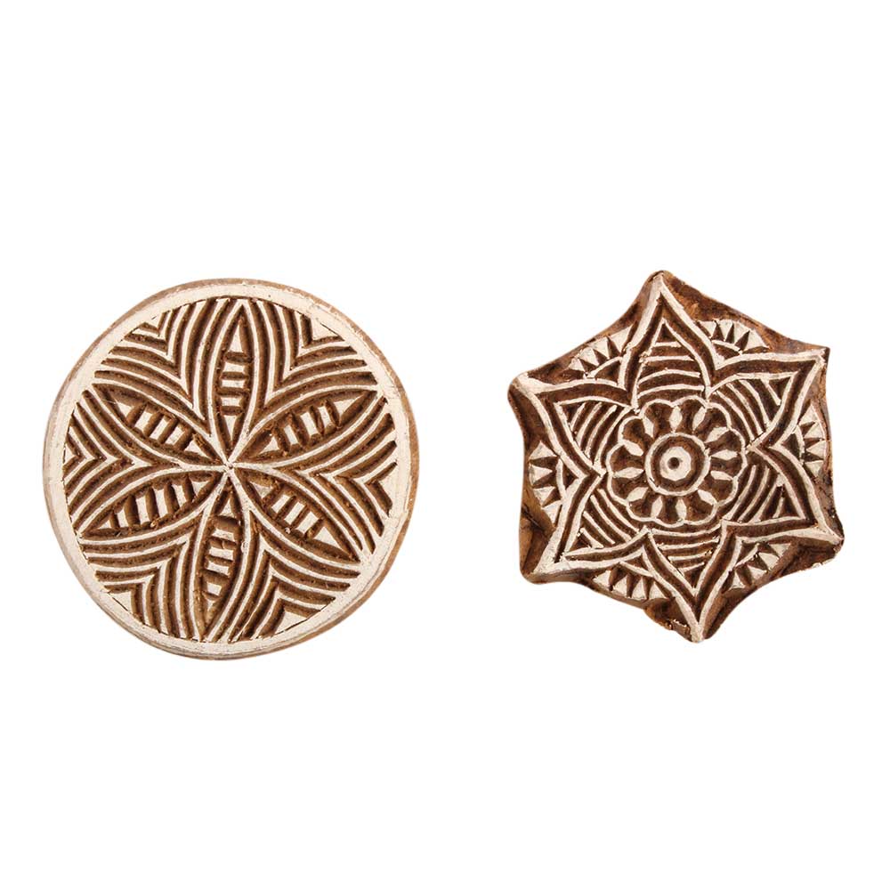 Set of 2 Piece New Mix Wooden Printing Block. Ideal for use on Fabric, Paper, Canvas, etc. These Blocks can be use to Print with Oil Colors, Fabric Colors, Water Colors, Acrylic Colors and Vegetable Colors.