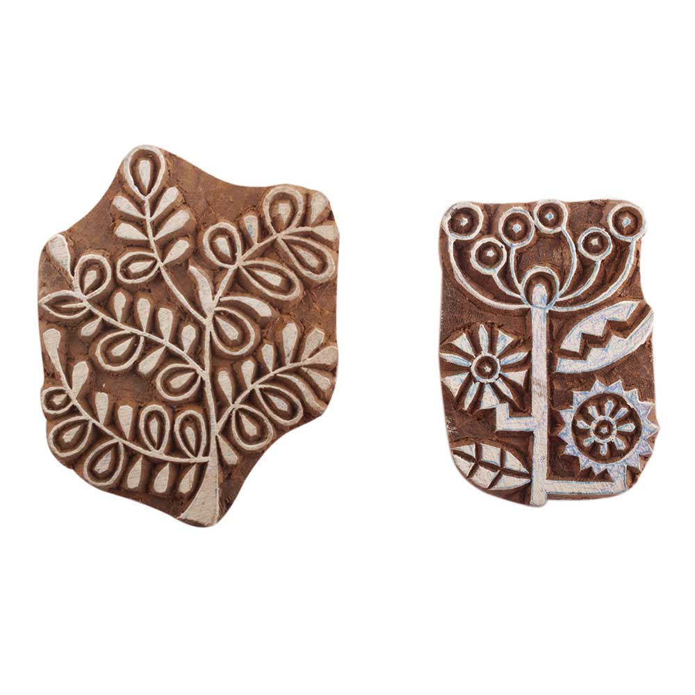 Set of 2 Piece New Mix Wooden Printing Blocks. Ideal for use on Fabric, Paper, Canvas, etc. These Blocks can be use to Print with Oil Colors, Fabric Colors, Water Colors, Acrylic Colors and Vegetable Colors.
