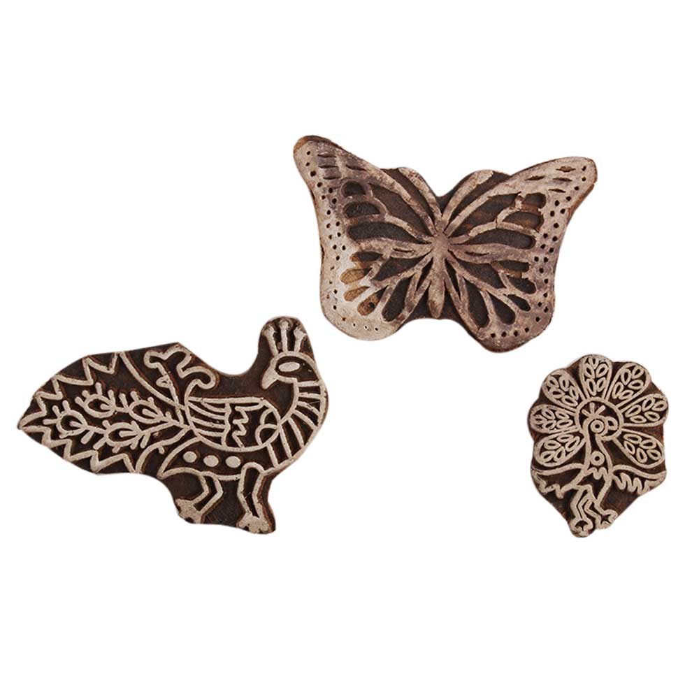 Set of 3 Piece New Mix Wooden Printing Block. Ideal for Using on Fabric, Paper, Canvas, etc. These Blocks can be use to Print with Oil Colors, Fabric Colors, Water Colors, Acrylic Colors and Vegetable Colors.