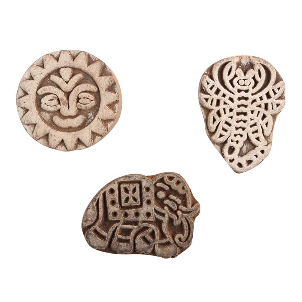 Set of 3 Piece New Mix Wooden Printing Block. Ideal for use on Fabric, Paper, Canvas, Etc. These Blocks can be use to Print with Oil Colors, Fabric Colors, Water Colors, Acrylic Colors and Vegetable Colors.