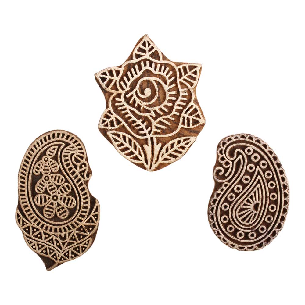 Set of 3 Piece New Mix Wooden Printing Block. Ideal for use on Fabric, Paper, Canvas, etc. These Blocks can be use to Print with Oil Colors, Fabric Colors, Water Colors, Acrylic Colors and Vegetable Colors.